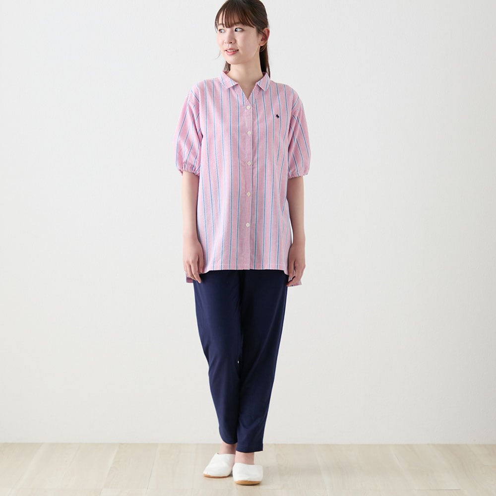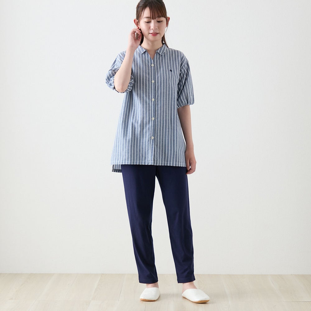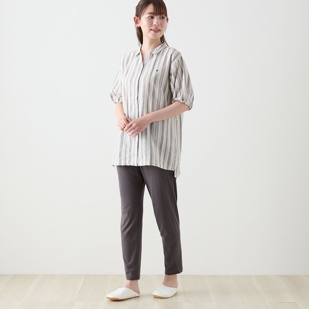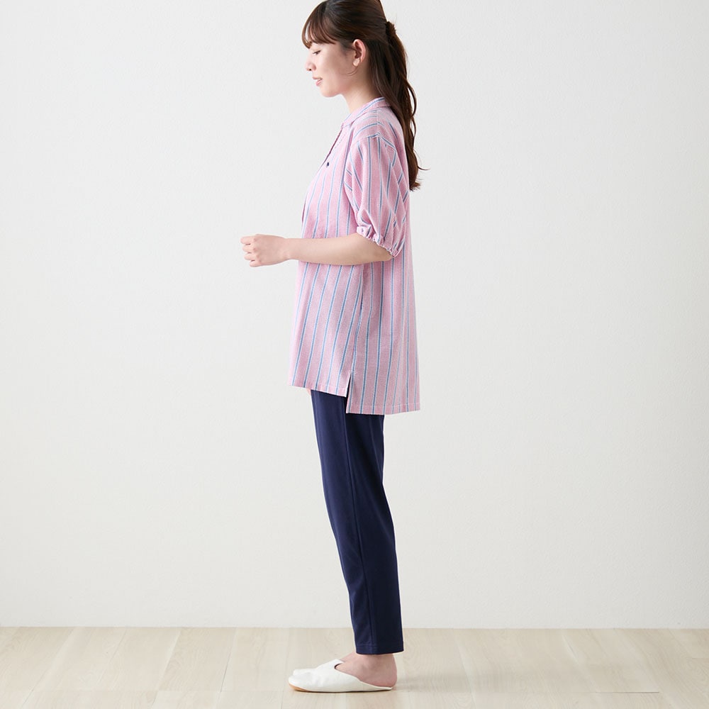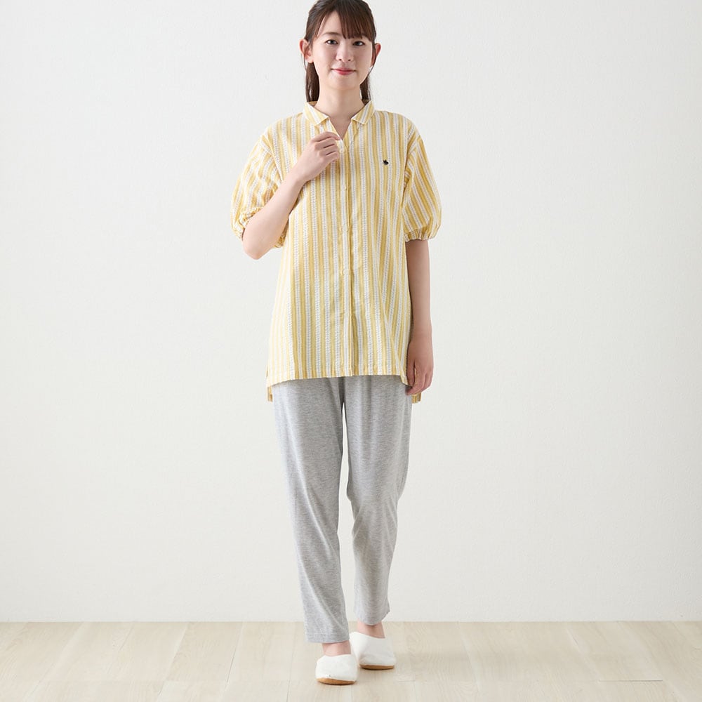 肌離れ◎綿混サッカー素材&カットソーボトムの涼感パジャマ
