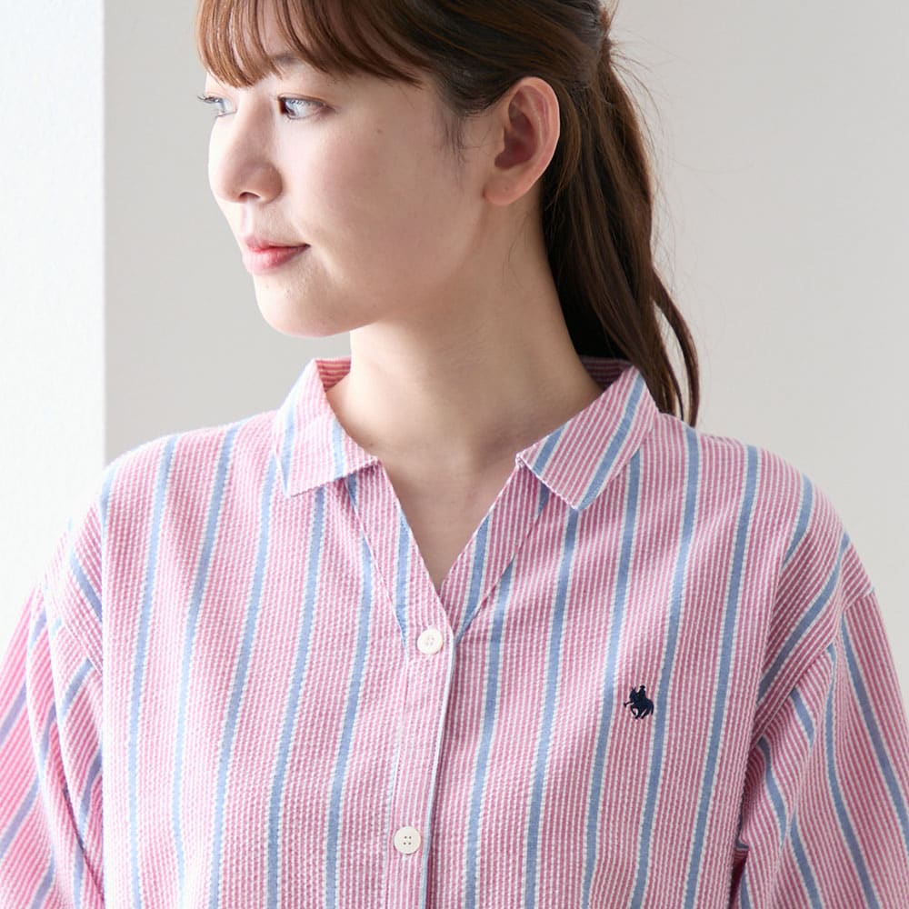 ・表面に凹凸があり、肌に張り付きにくい綿混のサッカー素材を使用。