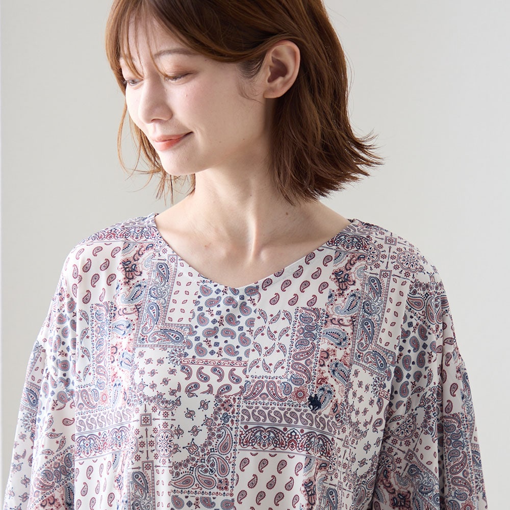 ・デコルテをきれいに見せるVネックデザイン。