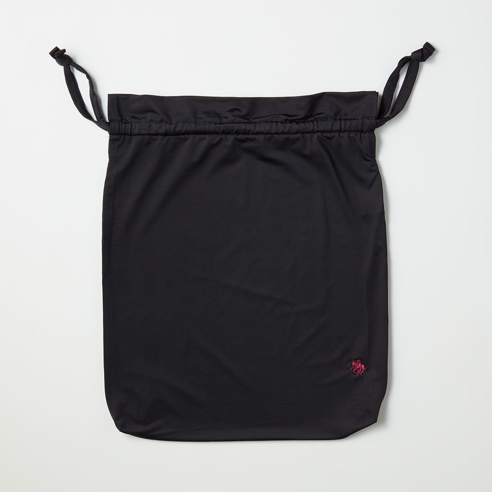 ・旅行やジムなどへの持ち運びに便利な共布の巾着付き。