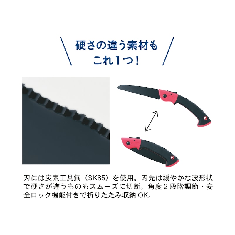 ●主材/刃部:炭素工具鋼(SK85)、ハンドル部:ABS・TPR・鉄・ばね鋼