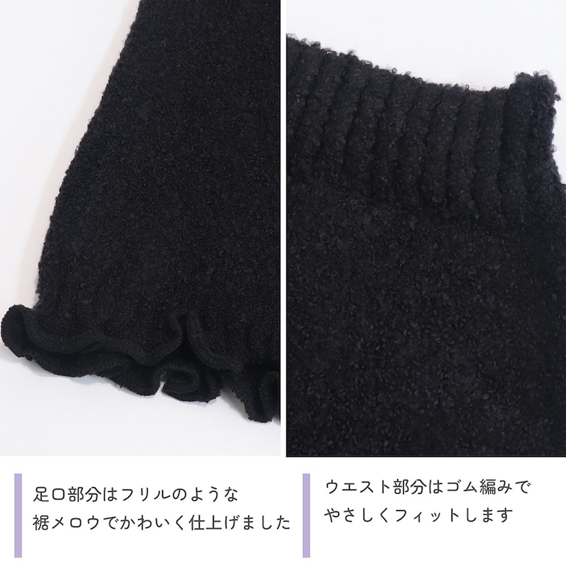 ・足口はゴム編みでめくれにくくメローフリルがおしゃれ