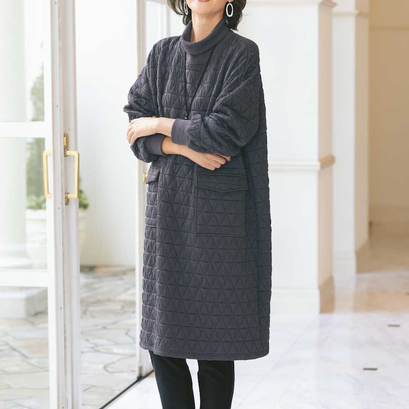 薄い中わた入りのキルティングは暖かく柔らかい着心地