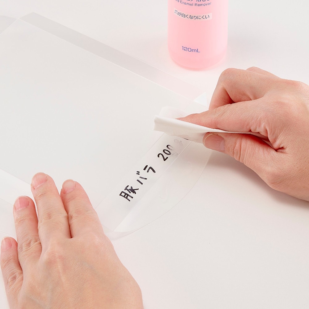 ●油性マジックで中身や日付を書け、除光液で消せば繰り返し使用可能