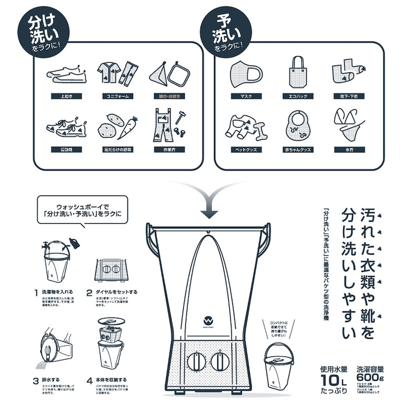 ●分けて洗いたい洗濯物に便利なバケツ型洗浄機