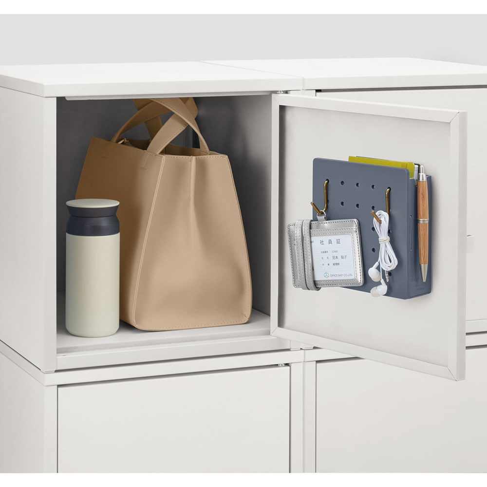オフィスのロッカーで電卓やメモ、ペンなどの収納に