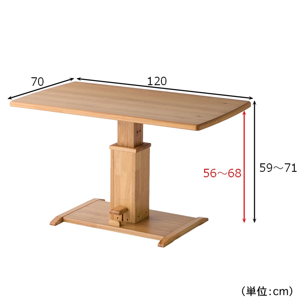 ●ソファー前で作業やお食事がしやすい59cmからダイニングテーブルとして使える71cmまで昇降します