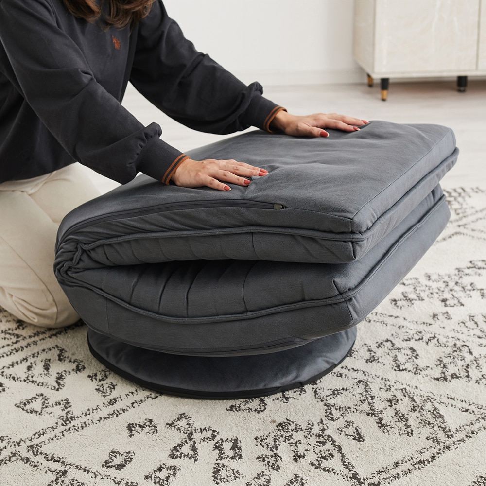自然とひざが上がる傾斜付きで楽に座れます。/グレー