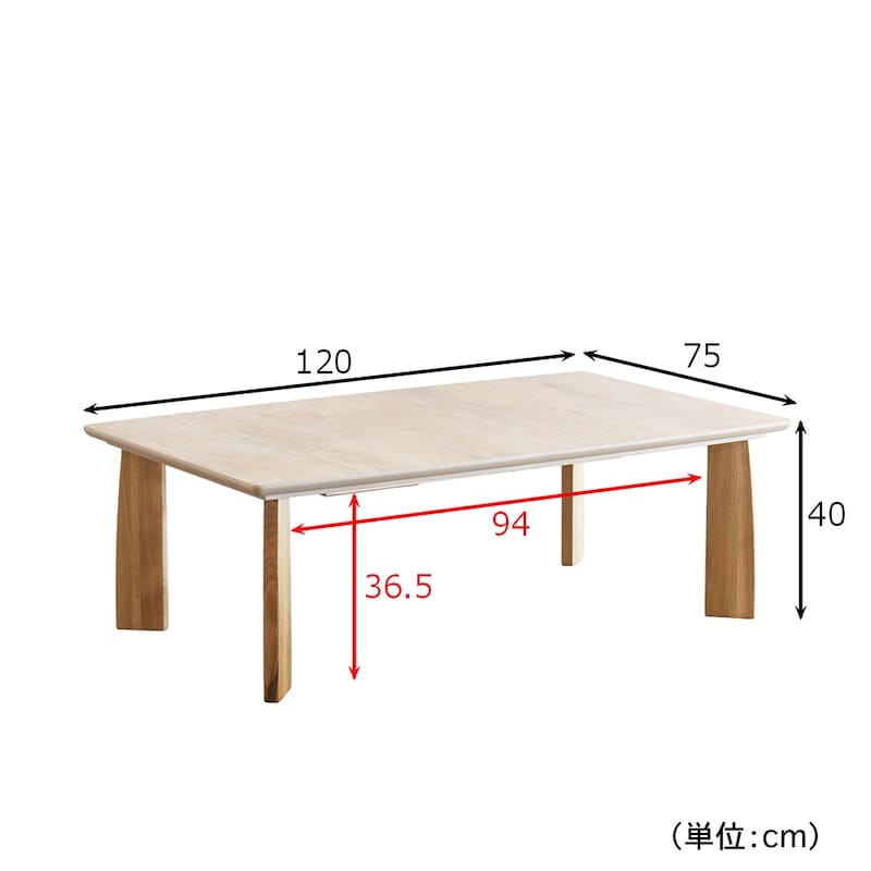 天然木脚が美しい大理石調のメラミン天板のこたつテーブル