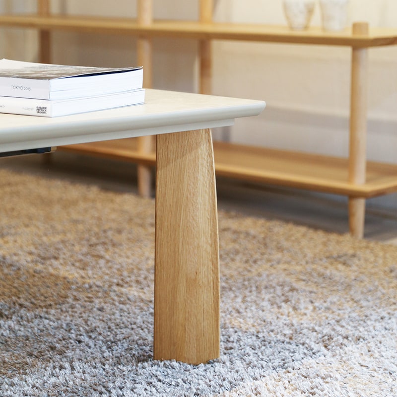 ●天板の長辺にゆるやかなカーブをつけ、有機的なフォルムに仕上げました