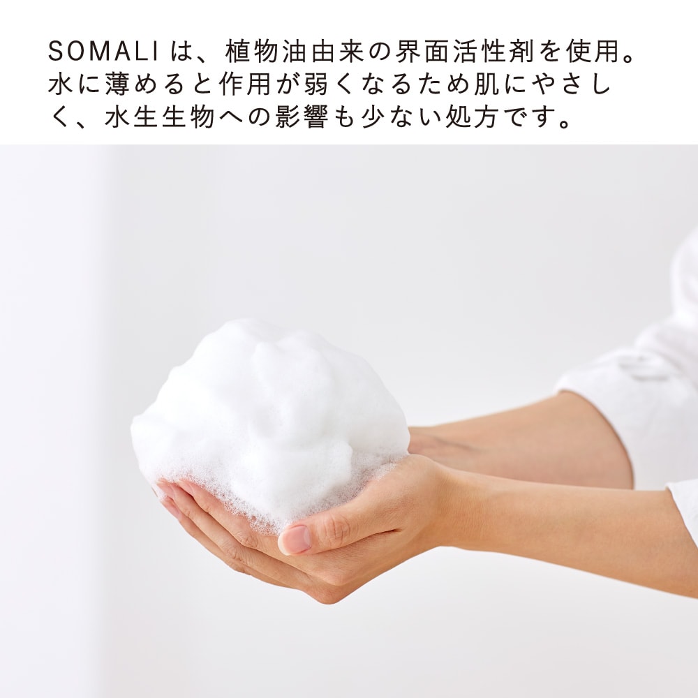 肌をやさしく包みこむもっちりとした泡と、石けんならではのさっぱりとした洗い上がりを両立させました。