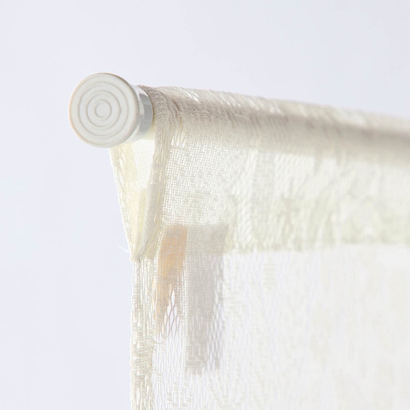 玄関からリビングの中が見えるので、ブラウンの柱の間に取り付けました。柱の間は72センチ幅で、商品は85センチ幅ですが、布を寄せてぴったり収まりました!