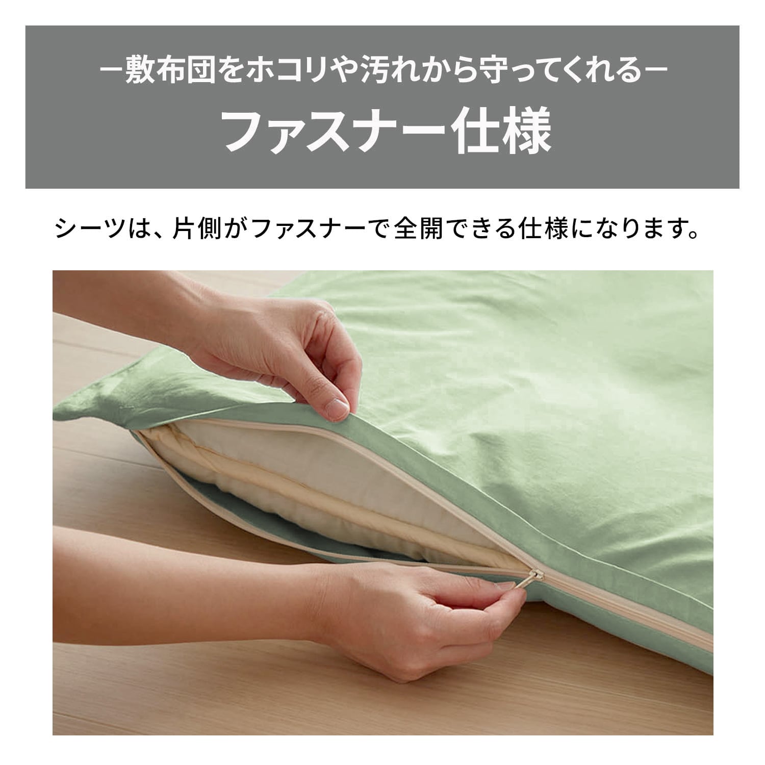 洗いをかけた綿素材の敷布団カバー