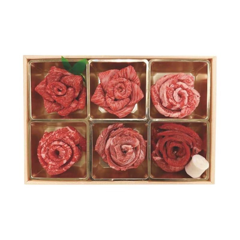 ●黒毛和牛の肩・肩ロース・モモ・バラ・希少な千本筋、そしてイタリア産の牛タンをお花のように美しく盛り付け