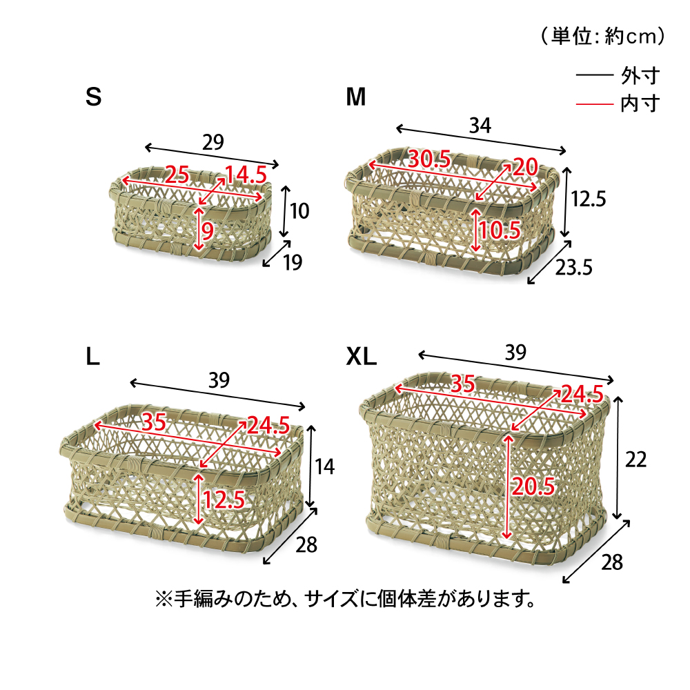 洗える竹編み風収納かご 【選べる4サイズ】