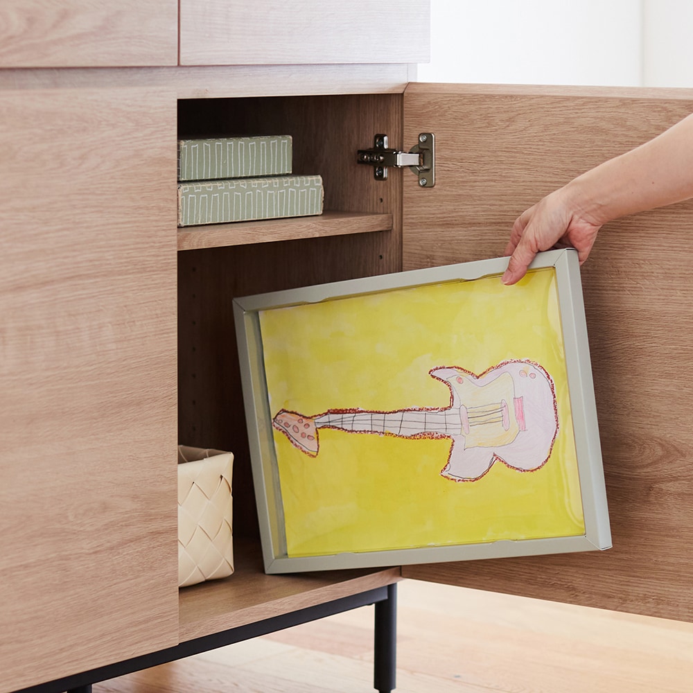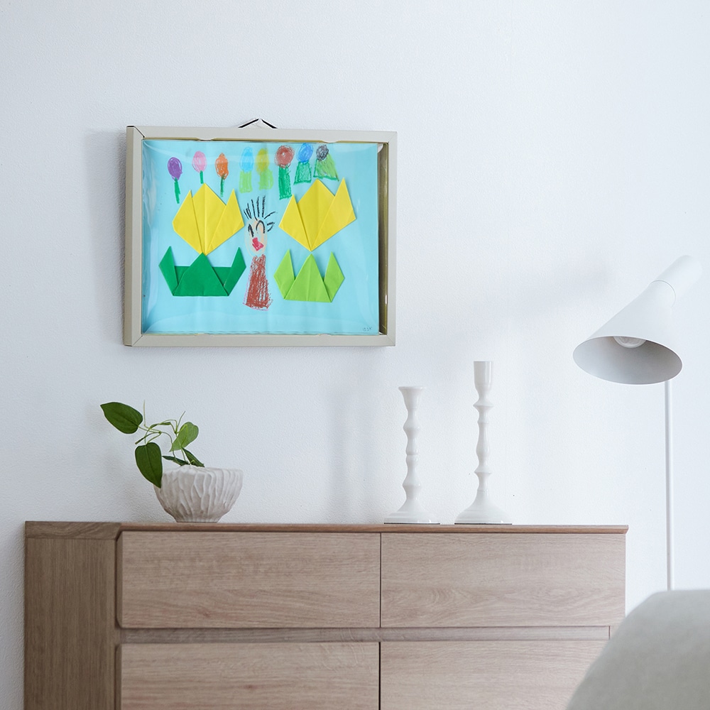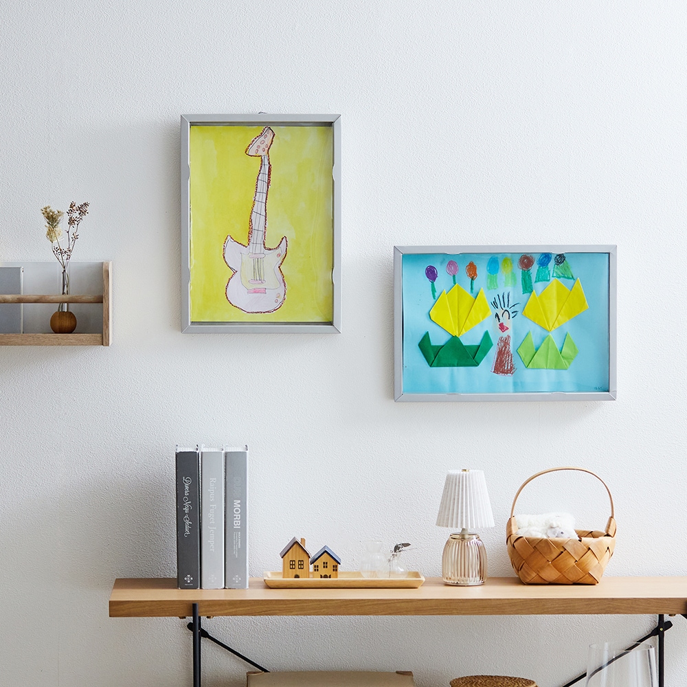 どんどん増える子どもの絵や作品を収納しながら飾れるアートフレーム。飾りたい子どもの気持ちと、リビングをすっきりさせたい大人の気持ち、両方を満たすアイテムです。