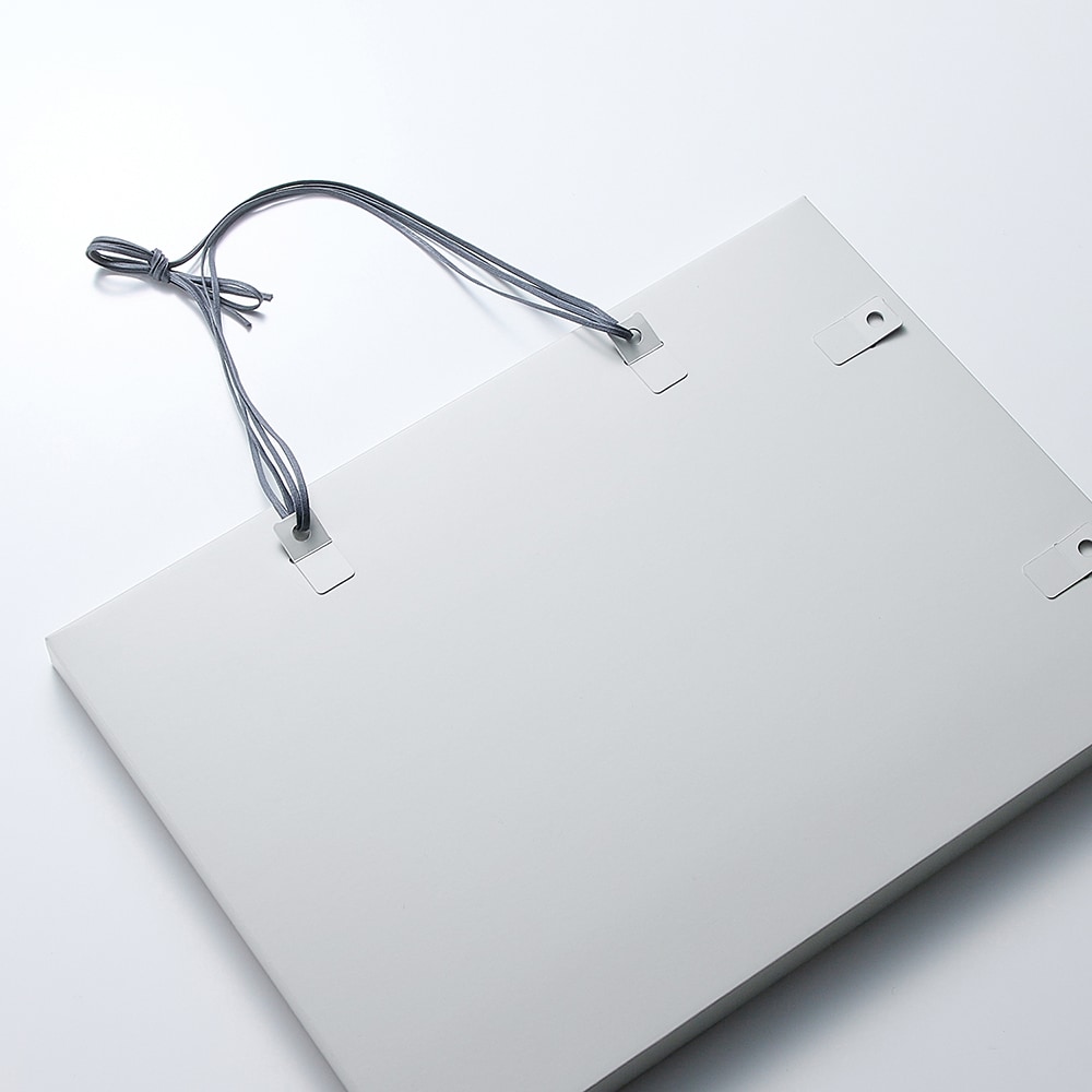 • 背面の仕様。付属の紐を使って、縦横どちらの向きでも飾れます