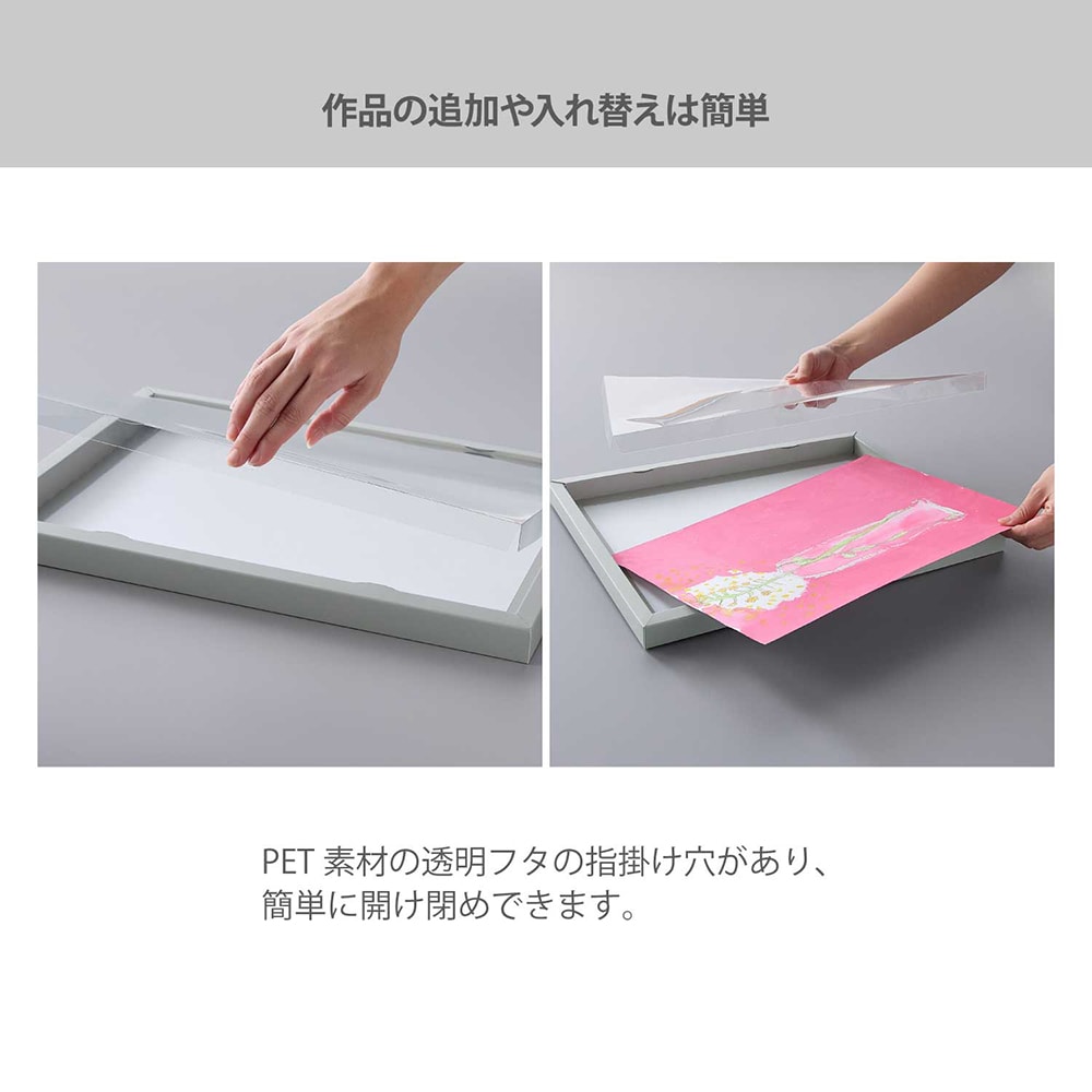 ●作品の出し入れは透明フタを開けて簡単にできます。