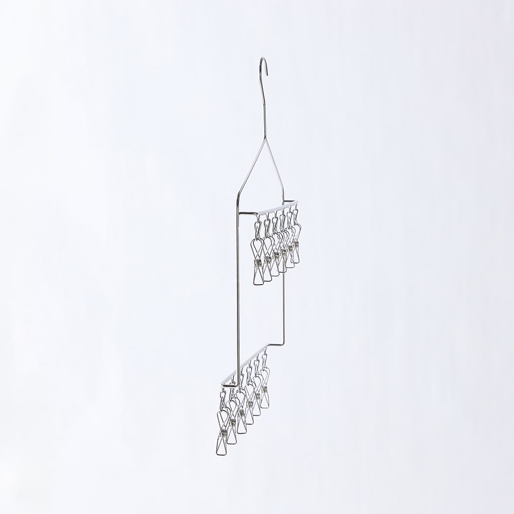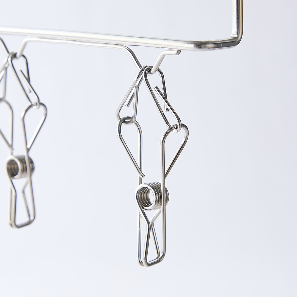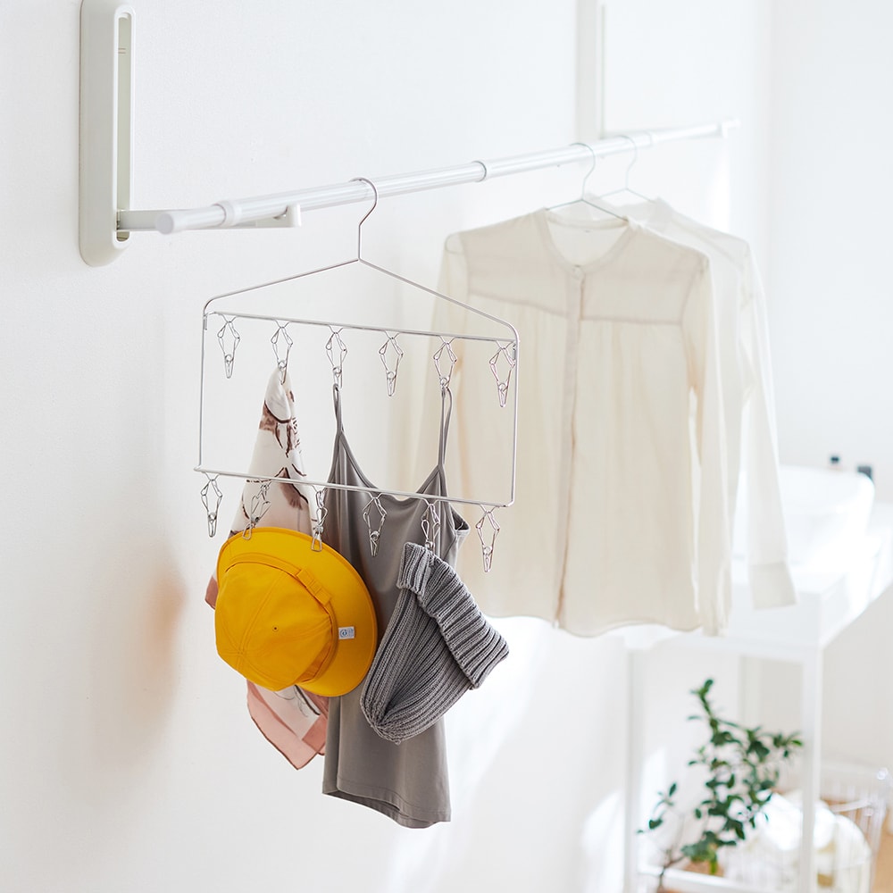 ステンレスだから部屋干しも外干しも気兼ねなくできる(プラは劣化の臭いが嫌)