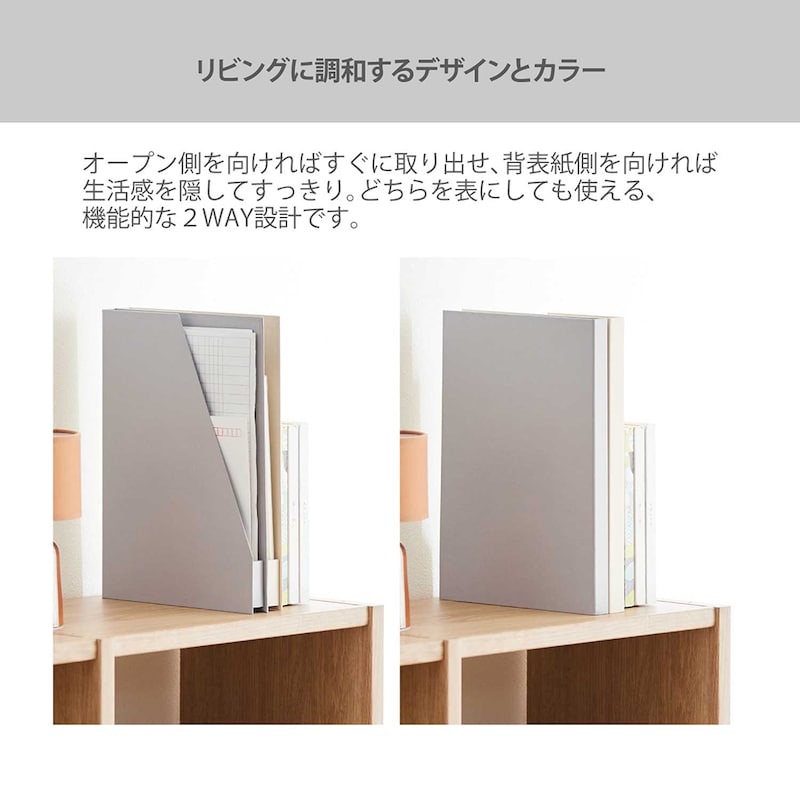 ●磁石を使わず棚に置けば、ファイルボックスのように自立します。