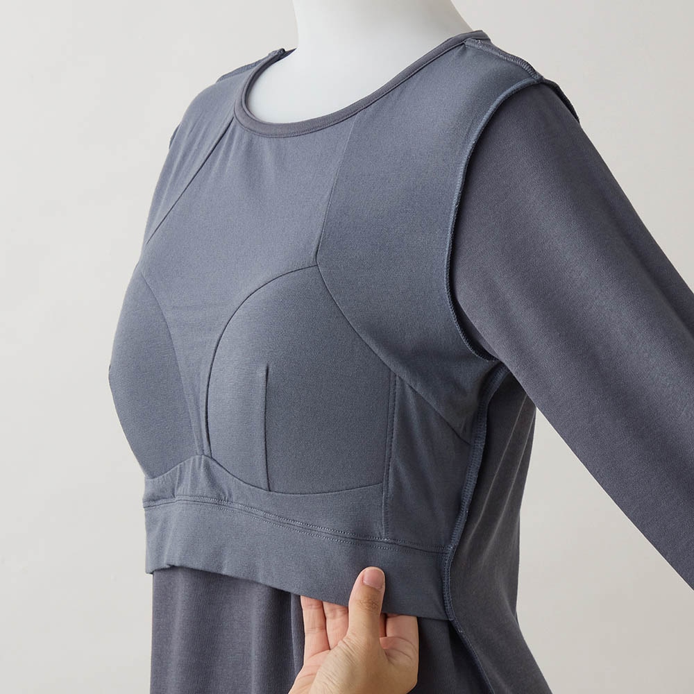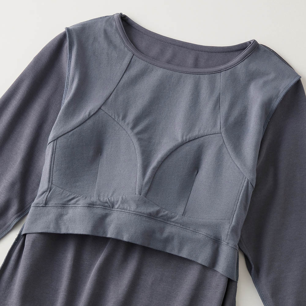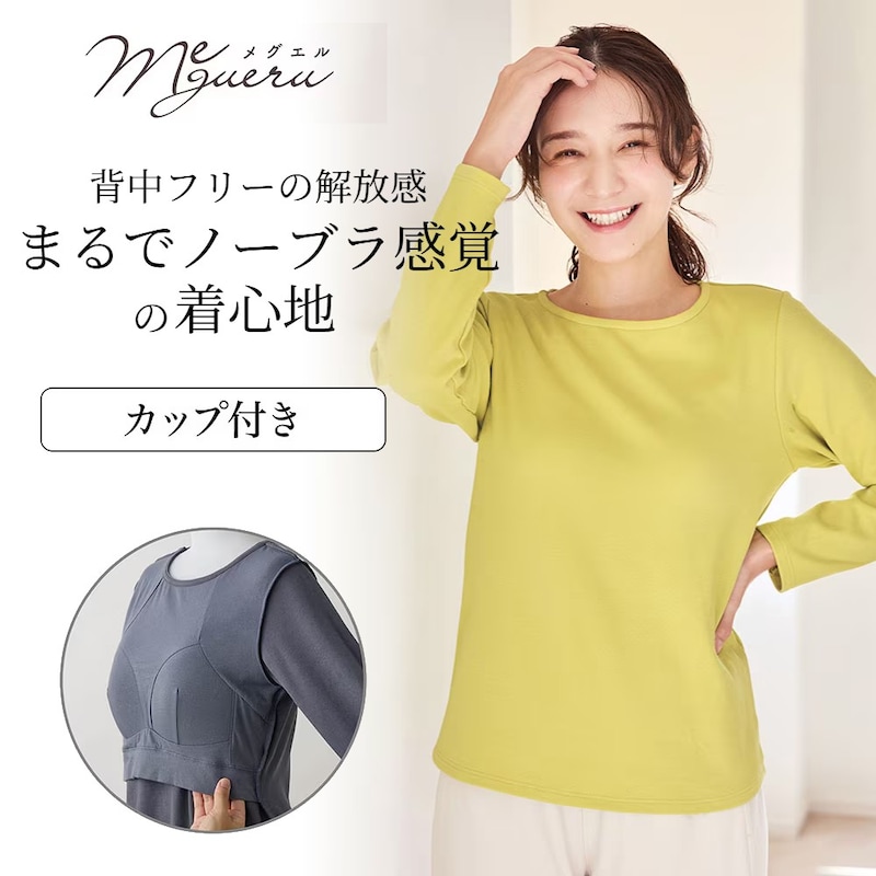ゆるここカップ付き綿混長袖Tシャツ(背中フリー)