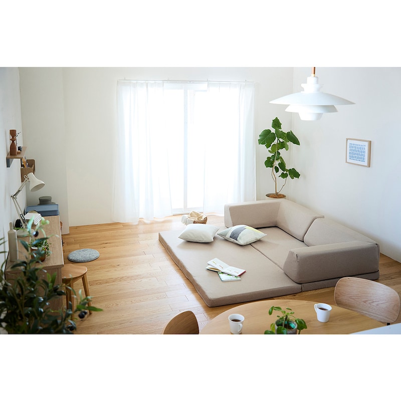 • 左から:ライトグレー、リネンナチュラル/床に置いてシートクッションとしても使えます