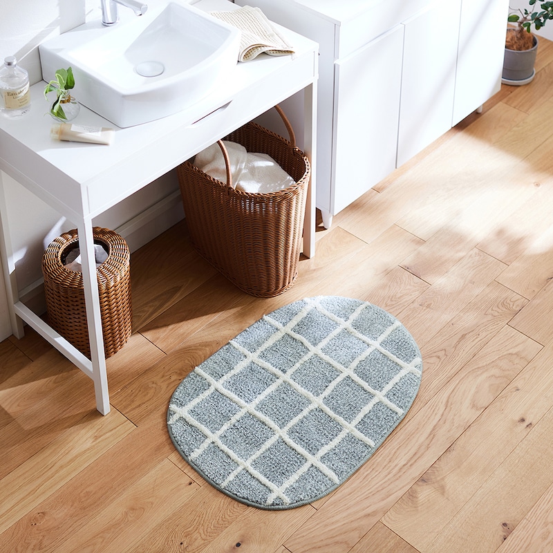 ●洗面所:洗面台の足元に敷き、飛び散った水滴を吸水