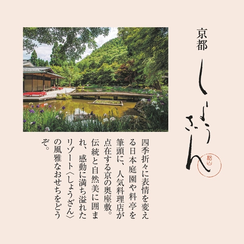 四季折々に表情を変える日本庭園や料亭を筆頭に、京料理や中国料理などの店が点在する京の奥座敷。伝統と自然美に囲まれ、感動に満ち溢れたリゾートです。