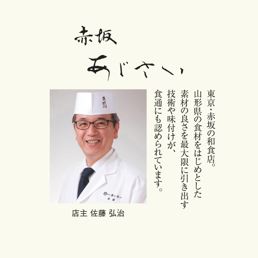 東京・赤坂の和食店。山形県の食材をはじめとした素材の良さを存分に引き出す技術や味付けが、食通にも認められています。