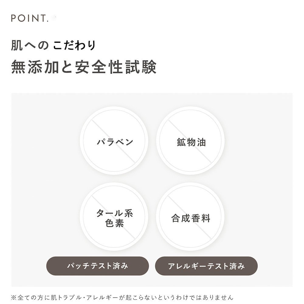 ●アレルギーテスト済み、パッチテスト済み(全ての方にアレルギーや肌トラブルが起きないというわけではありません。)
