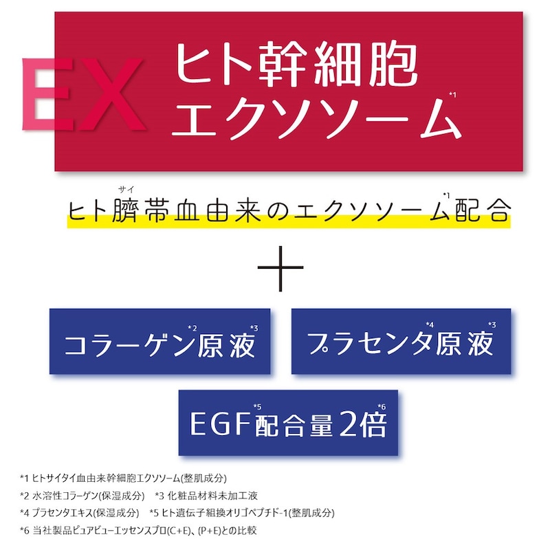さらにエイジングケア(※1)で注目の成分・ヒトサイタイ血由来のヒト幹細胞エクソソーム(※3)を配合した贅沢な美容液です。