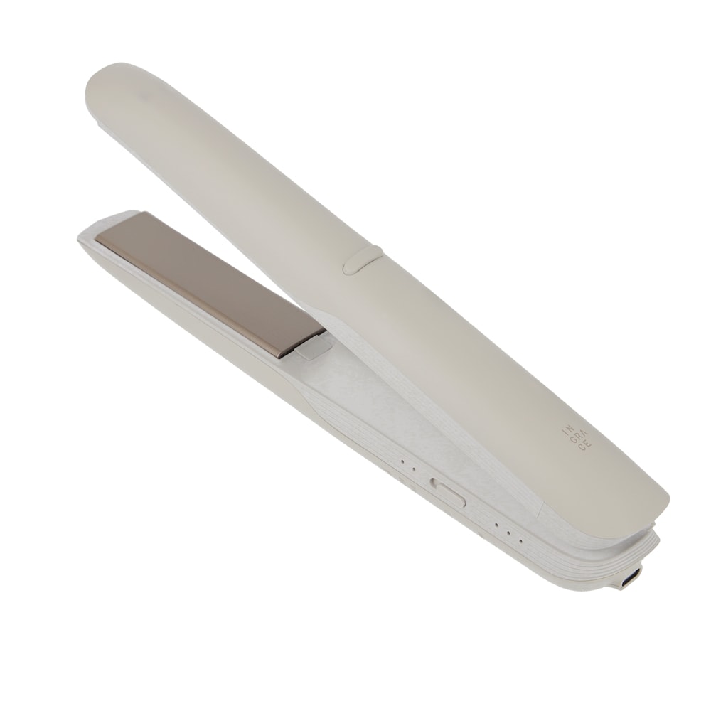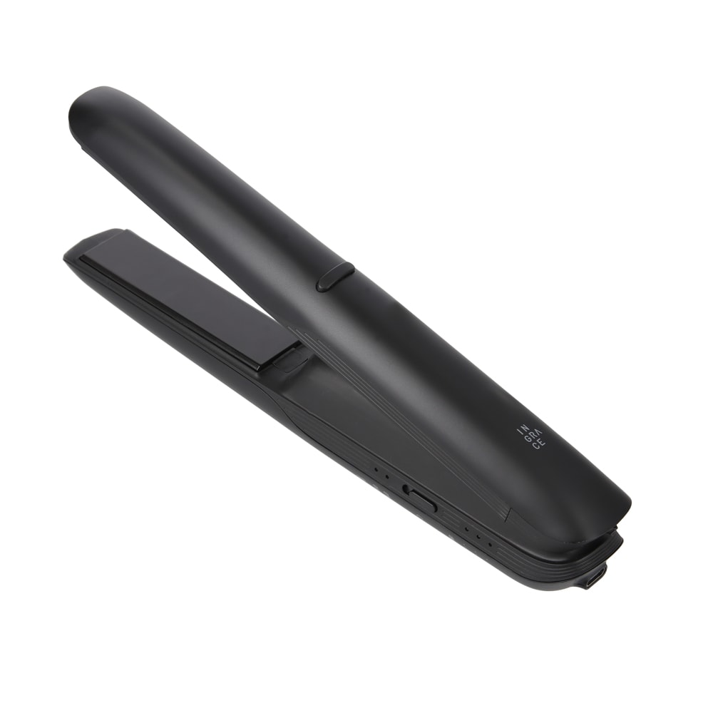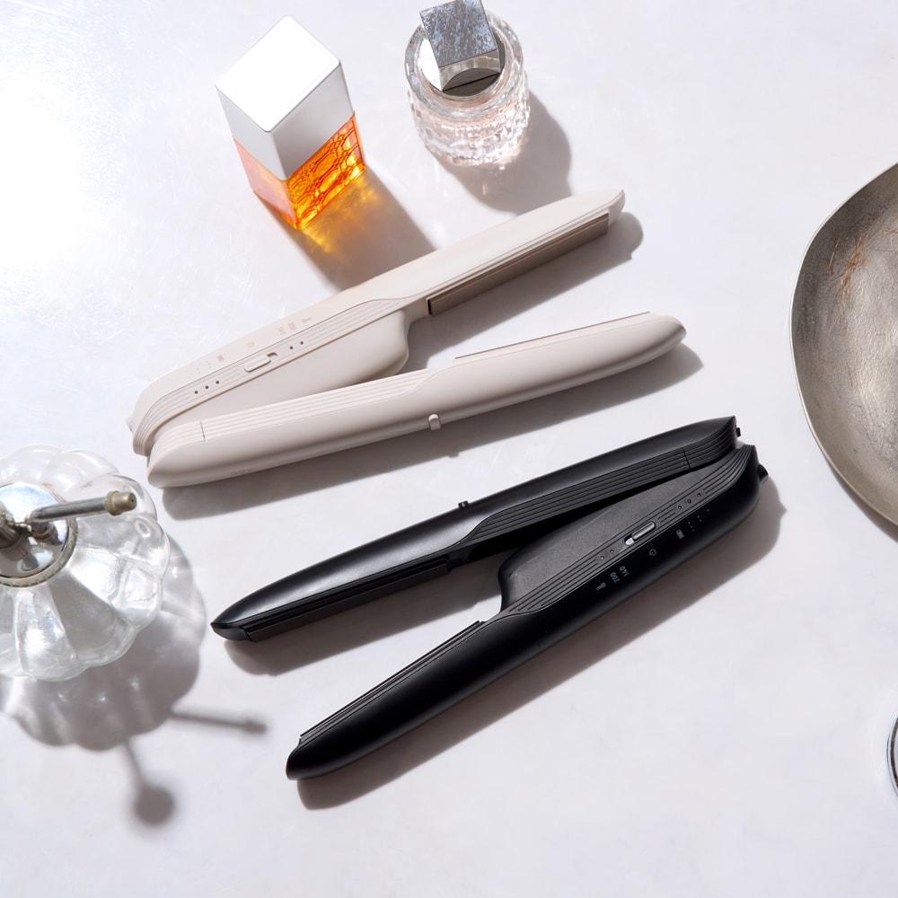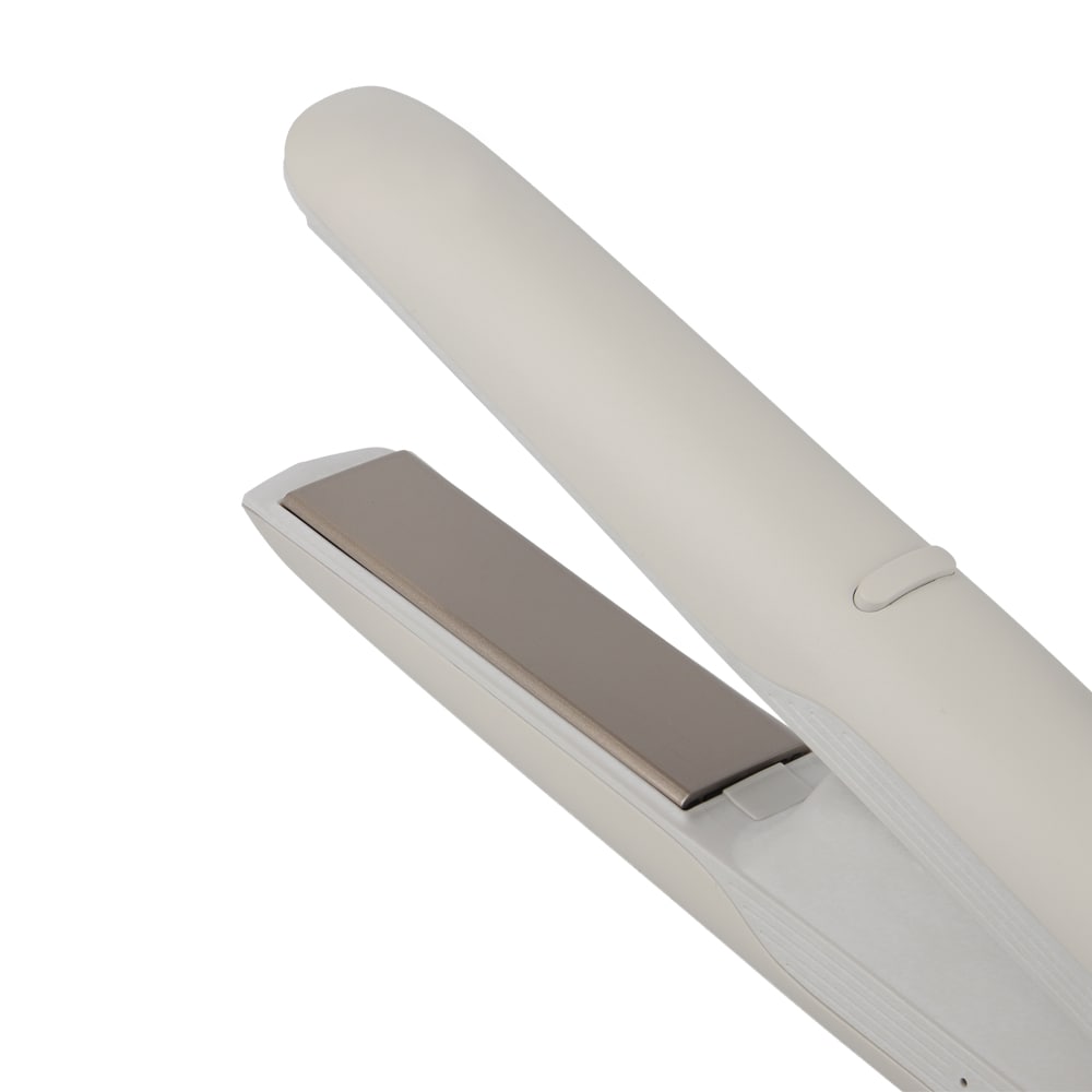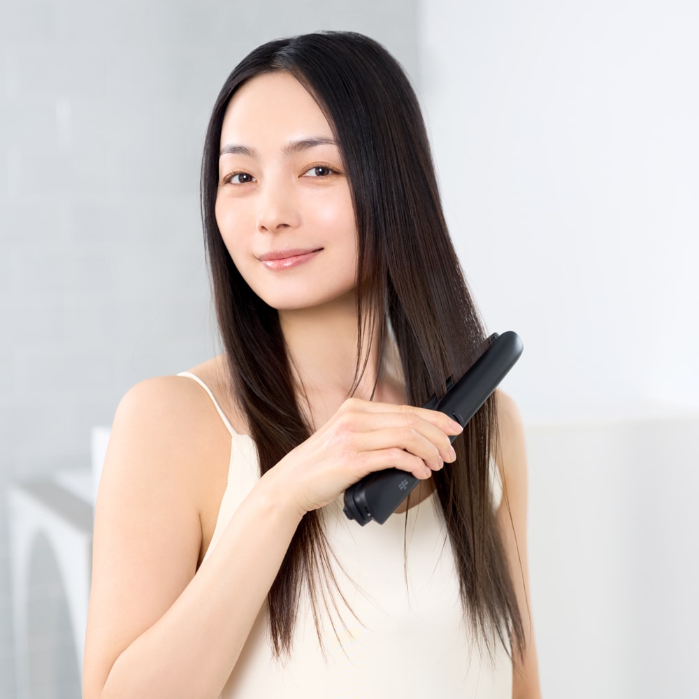 熱保持力に優れたプレートが髪にしっかりと熱を伝える、ワンプッシュ・ワンスルーで思い通りの仕上がりに。