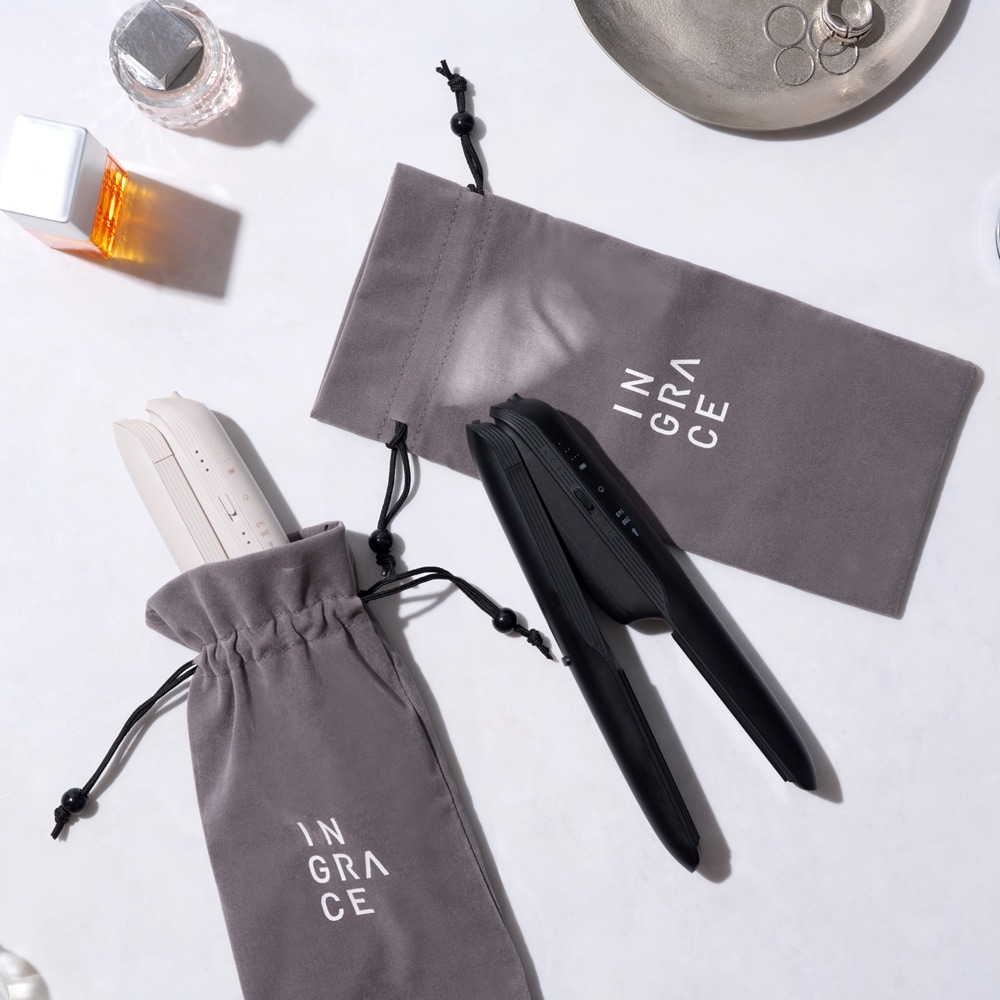持ち運びに便利なポーチと、誤作動による電源ONを防ぐシリコンバンド付き。