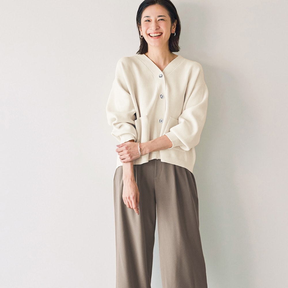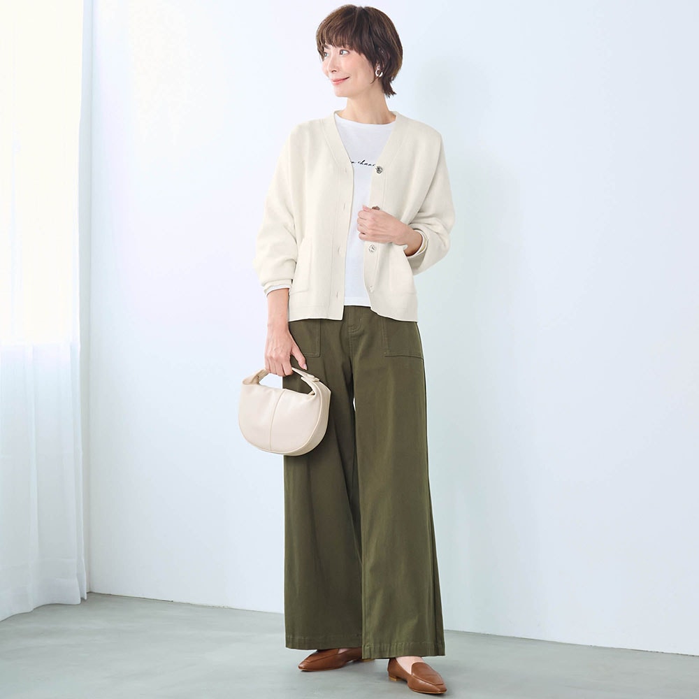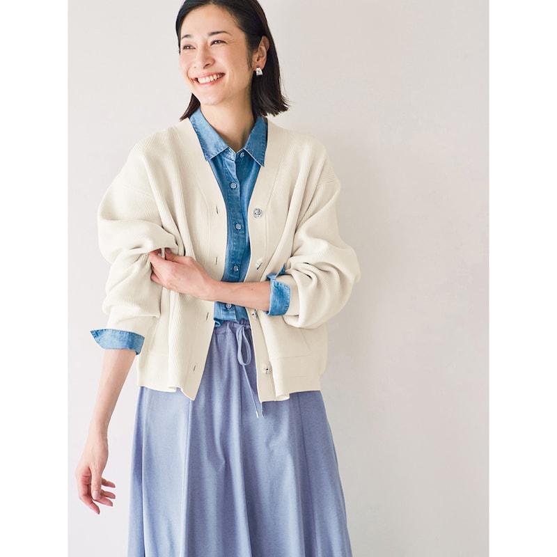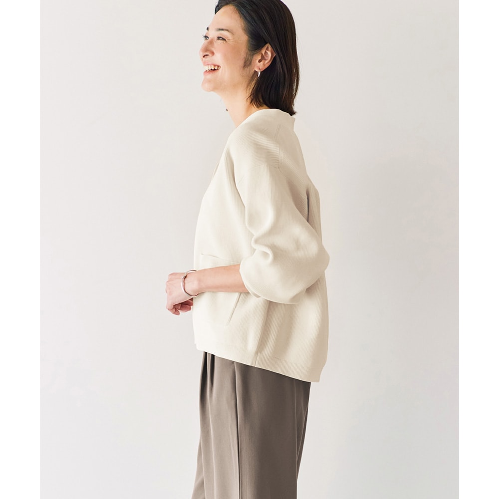 形が可愛いと思って購入。春先に薄手生地同士で着れるかなと思います。スキニーパンツには合わせにくいけど、ワイドパンツで使っていこうと思います。普通に洗濯しましたが、形整えればよれずにキレイに保てます。