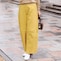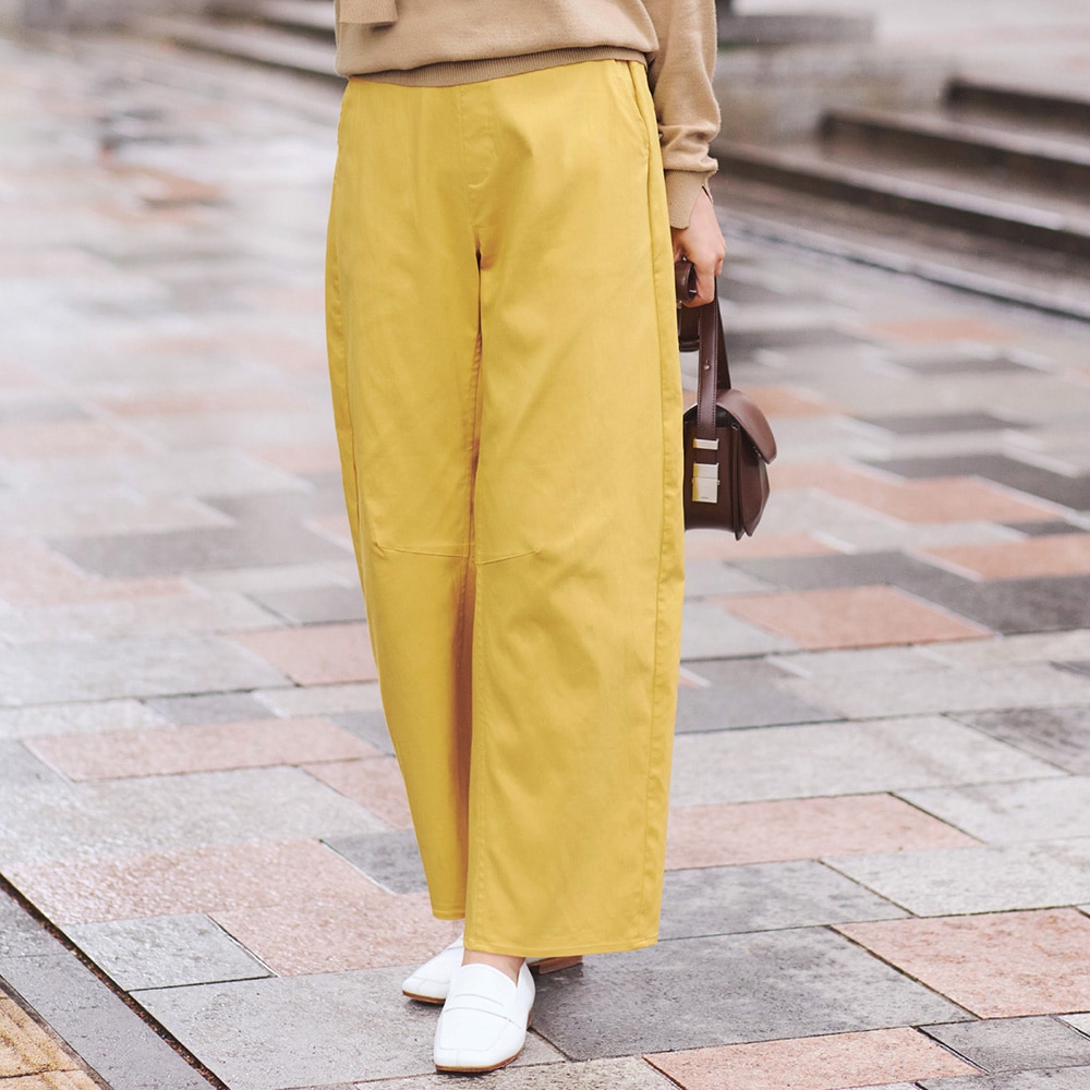 思ったより綺麗な黄色でした。マスタードなので濃い黄色って感じ。幅が太めですがサラッとした生地でシルエットも綺麗です。年相応にお腹も出てますがトップスをインしてもスッキリ着られます。Tシャツを合わせても薄手のニットを合わせても合うので場所を選ばず着られそうです。まだ出掛けてないので1日着てどれだけシワが出るのかとか着心地とかは分からないので⭐︎−1です。