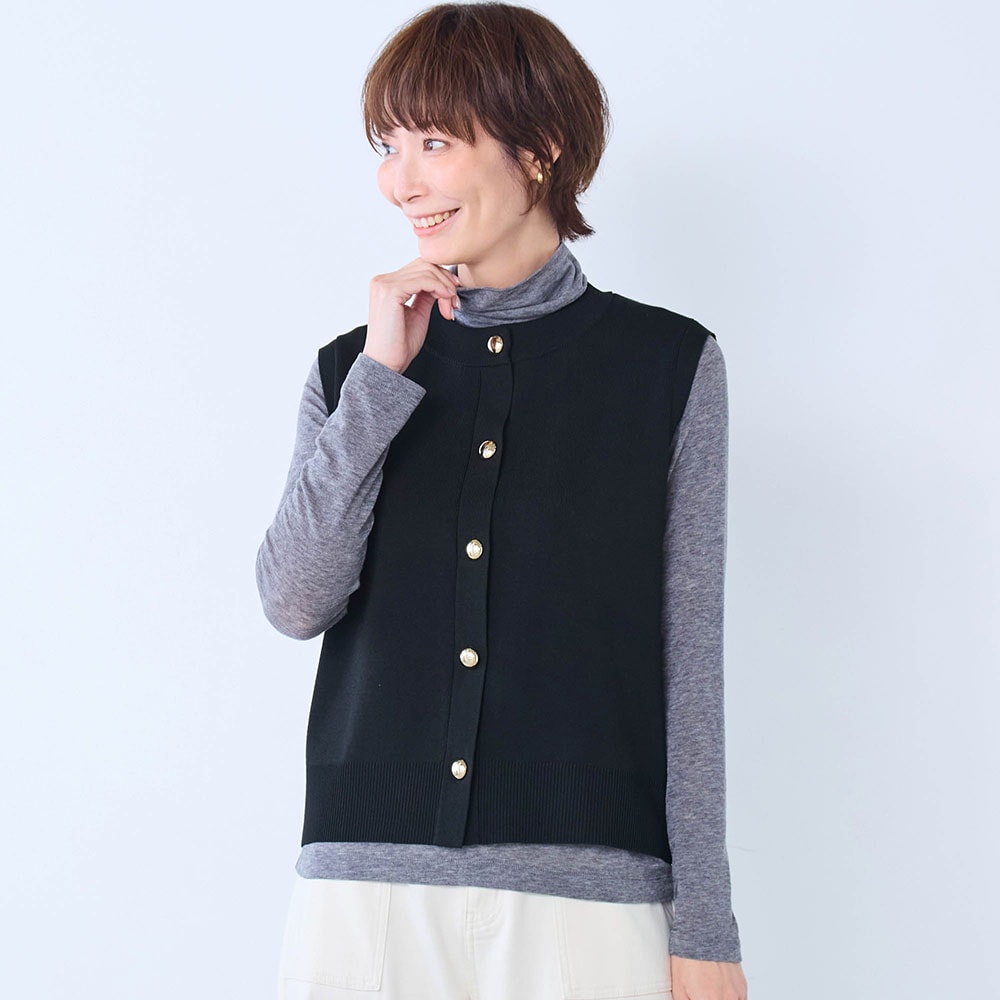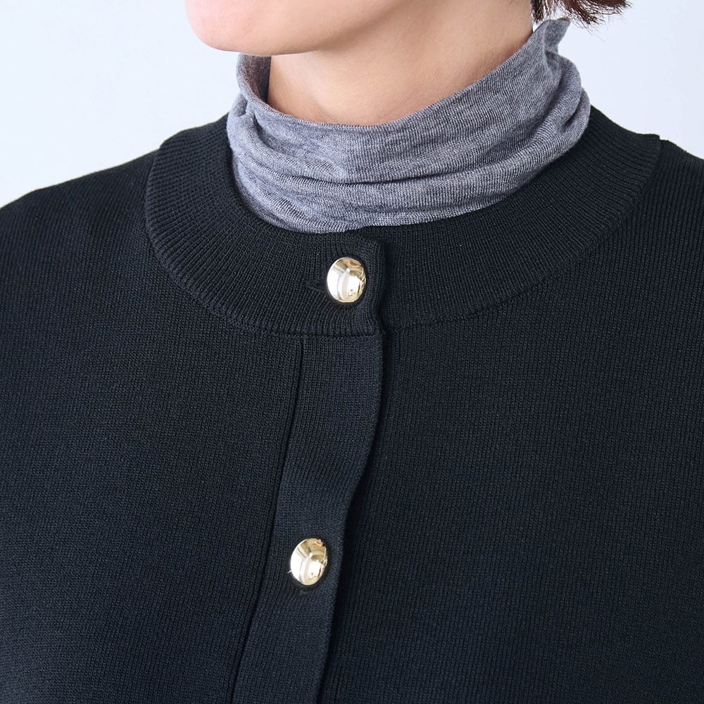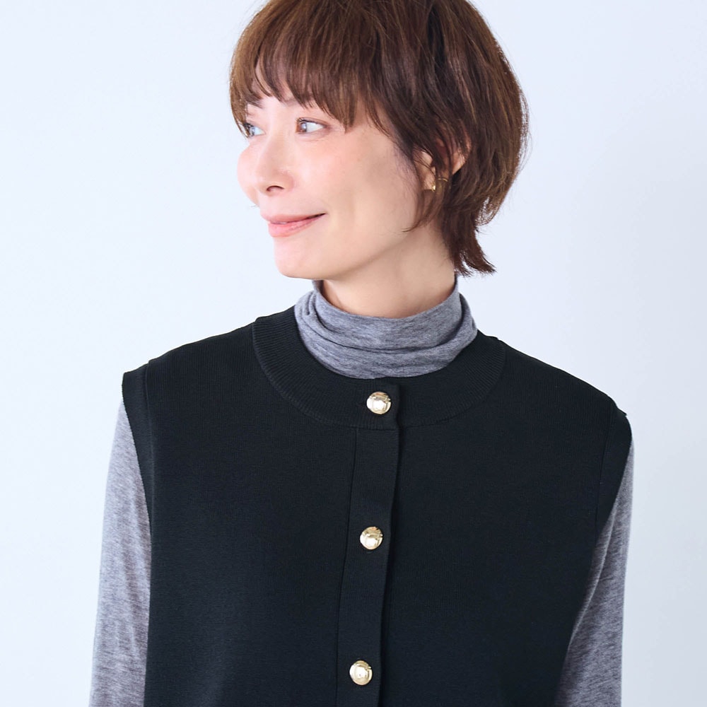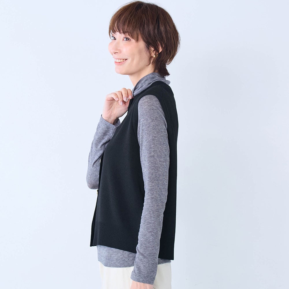 いつもMが、ふっくらセーターの上に着るつもりで、Lを買ったしまった。大きすぎることはないので、交換しなかった。着はじめ少し重たいと感じたが、心地よい重さに感じてきた。体の線をカバー、色もきれいな黒色で満足です。