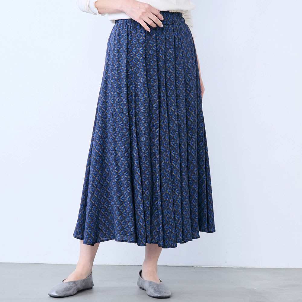 163㎝、MかLで迷いMを購入した。ウエストはヒモで調節できるので問題無し、幾何学模様も好みでフレアーラインもすっきりと綺麗だった。ただ小さい袋に入っていたのでシワが酷くアイロンがけ必要だった。