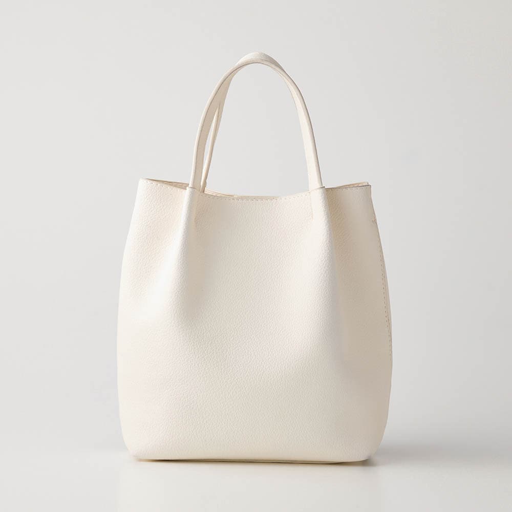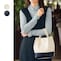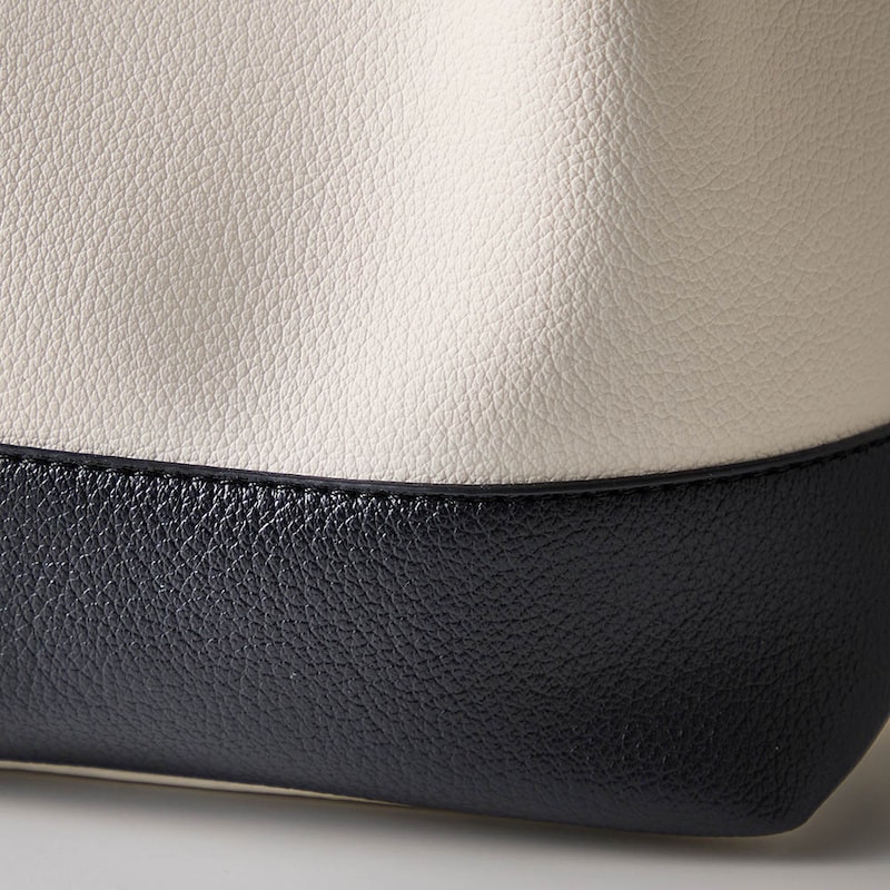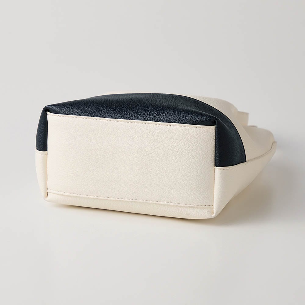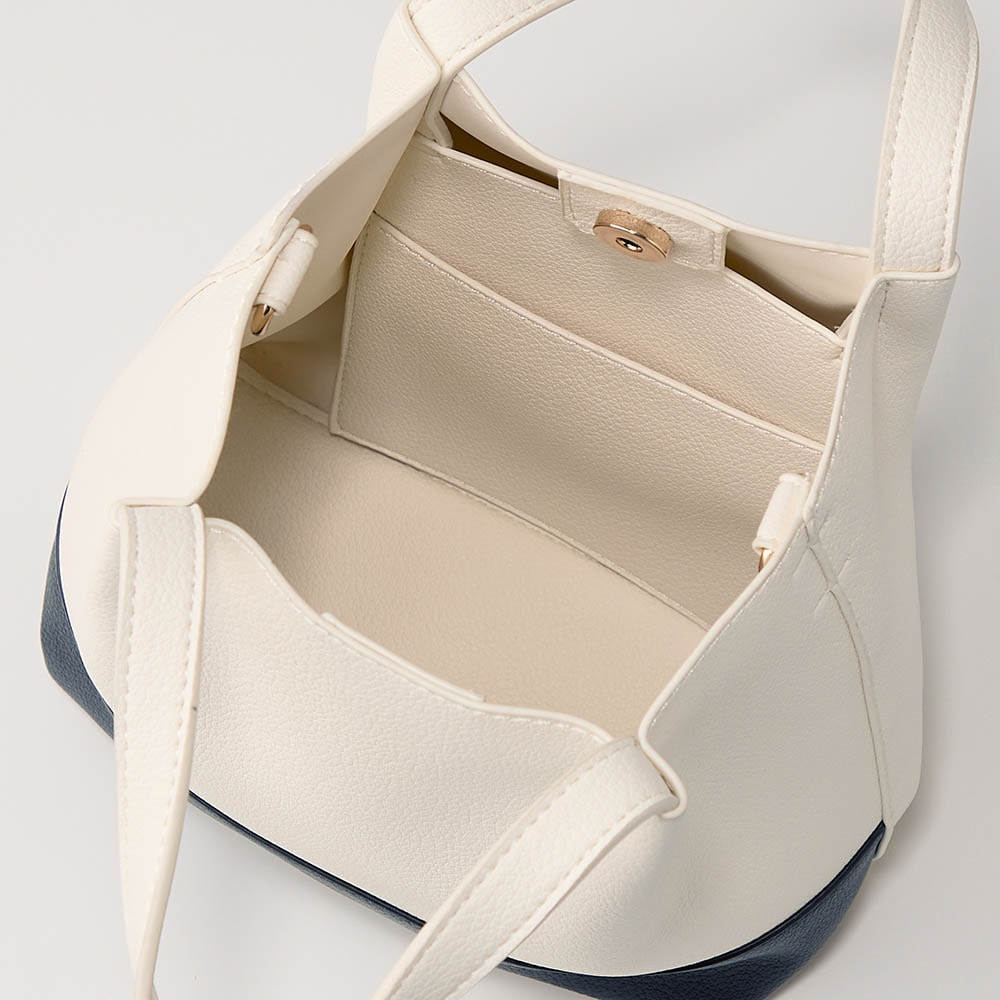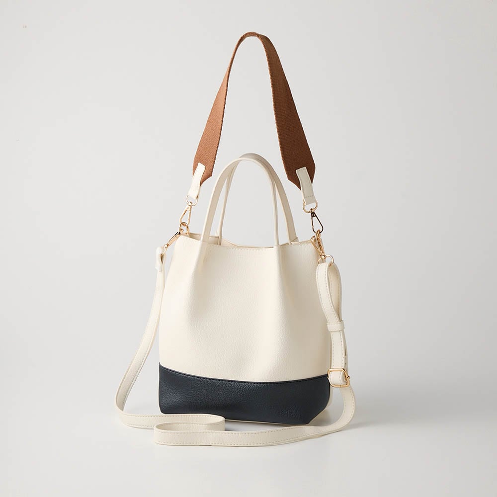 入れ口が小さいです。サイズ表示は横幅20センチ・奥行11センチになっていますが、上部入れ口は横幅13~15センチ・奥行8~10センチほどです。入れ辛いことはありませんが、大きい物はちょっと斜めにして出し入れしています。グリーンの肩掛けベルトですが、これを使うと持ち手が脇に触って気になります。斜め掛けできるくらい長ければ使ったかもしれません。
