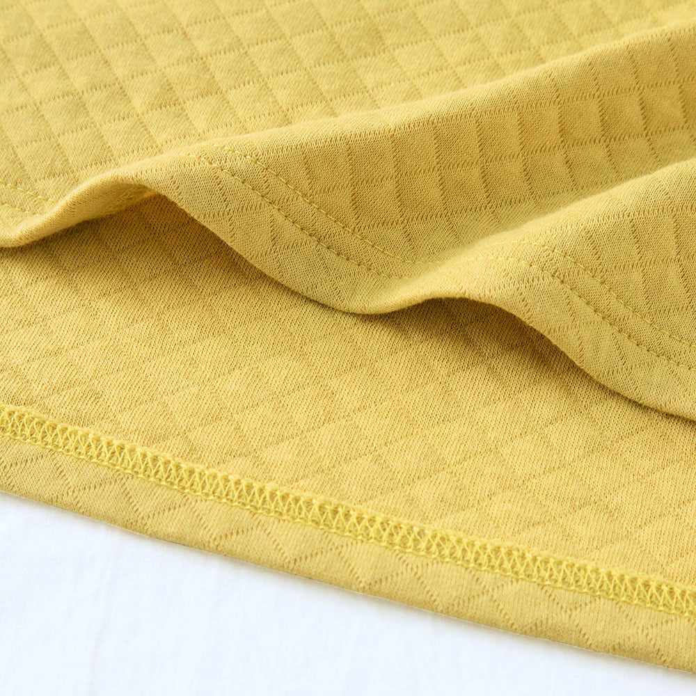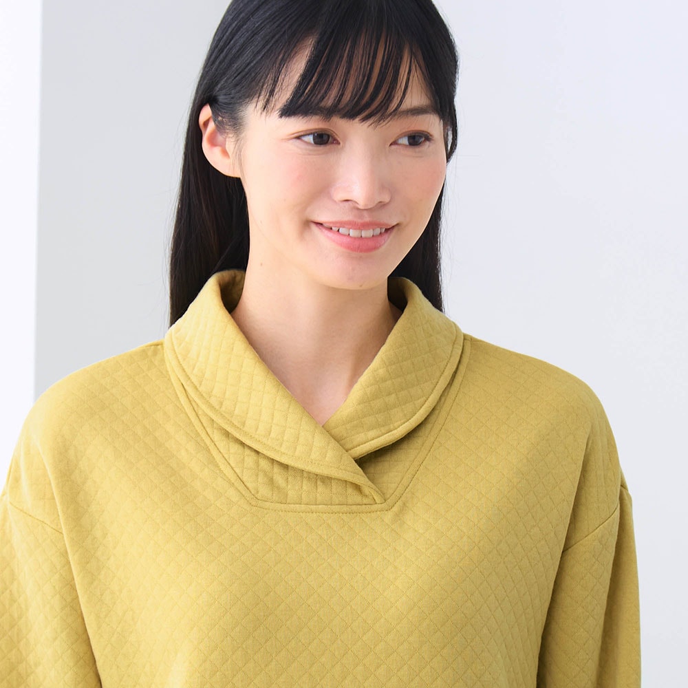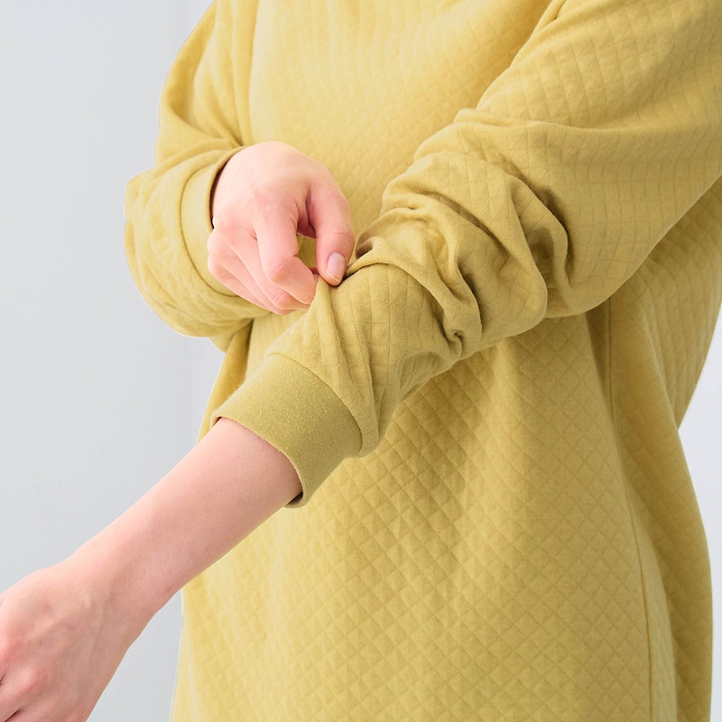 ニットキルトなので、やはり洗濯すると若干縮んだように思います。身長が166あるのでパンツ丈や袖丈が短くなるのが残念です。