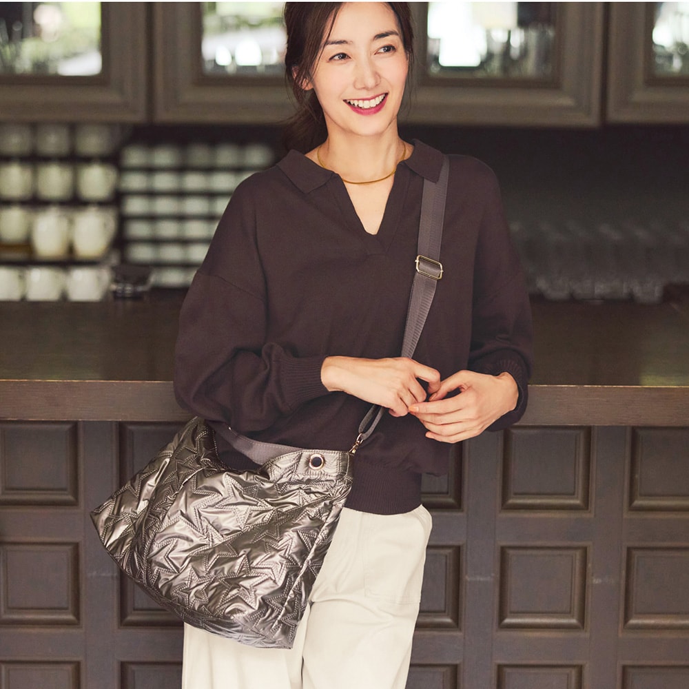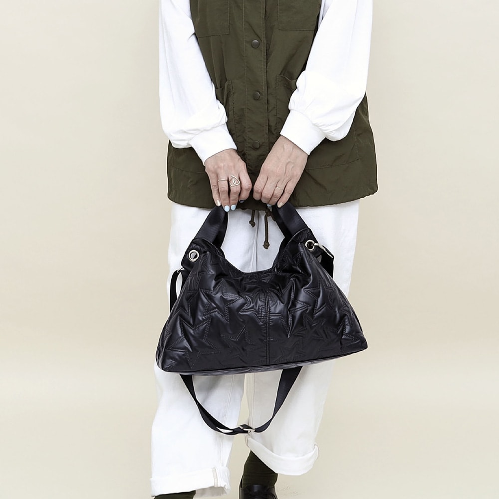 大ぶり星柄バッグで着映えも収納もバッチリ!