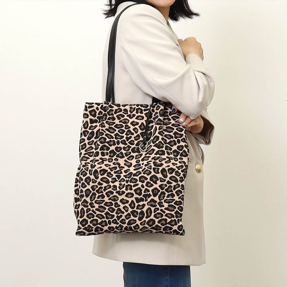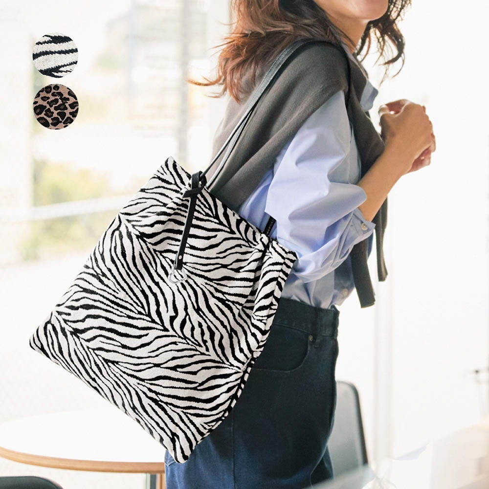 アニマル柄ツマミハンドルフラットトートバッグ