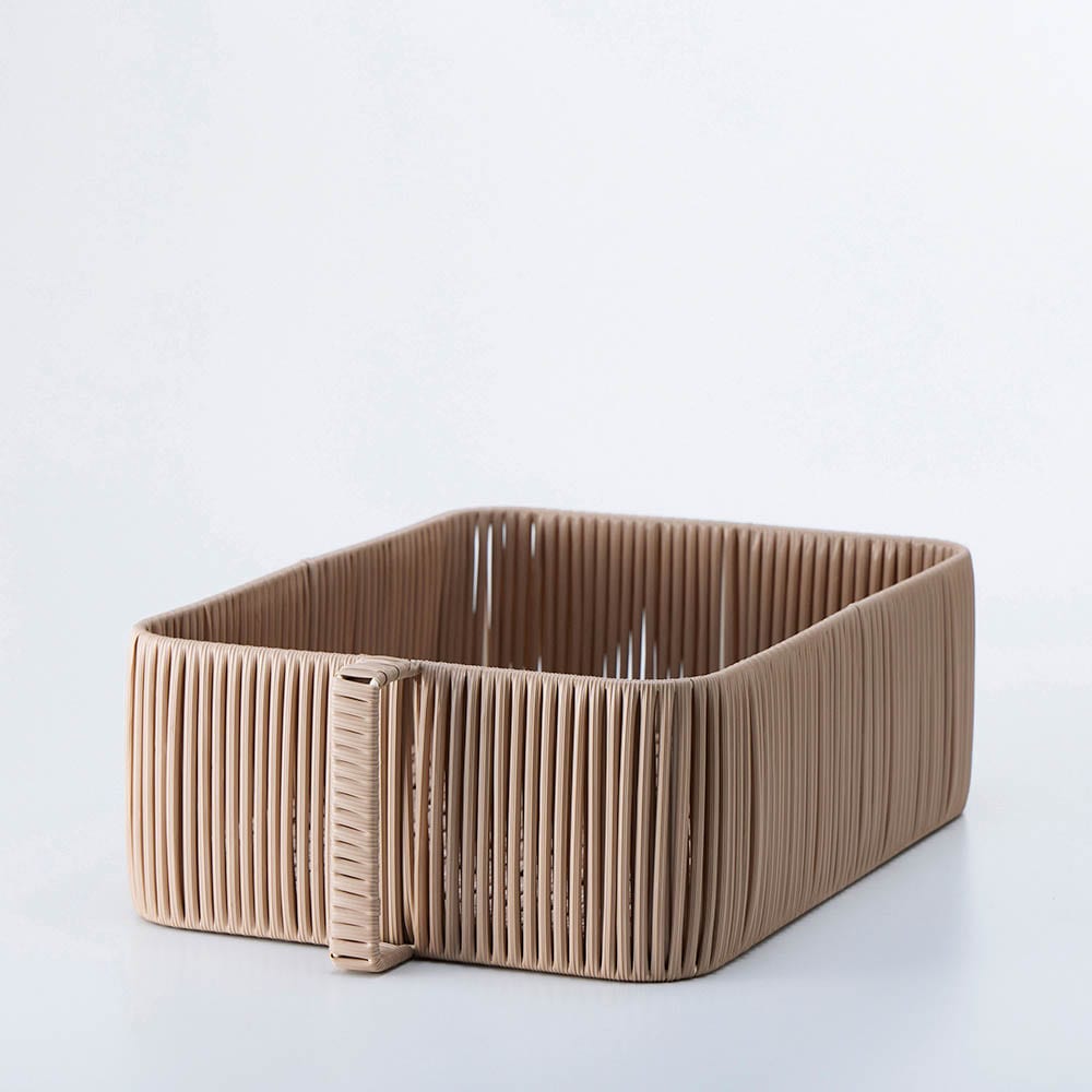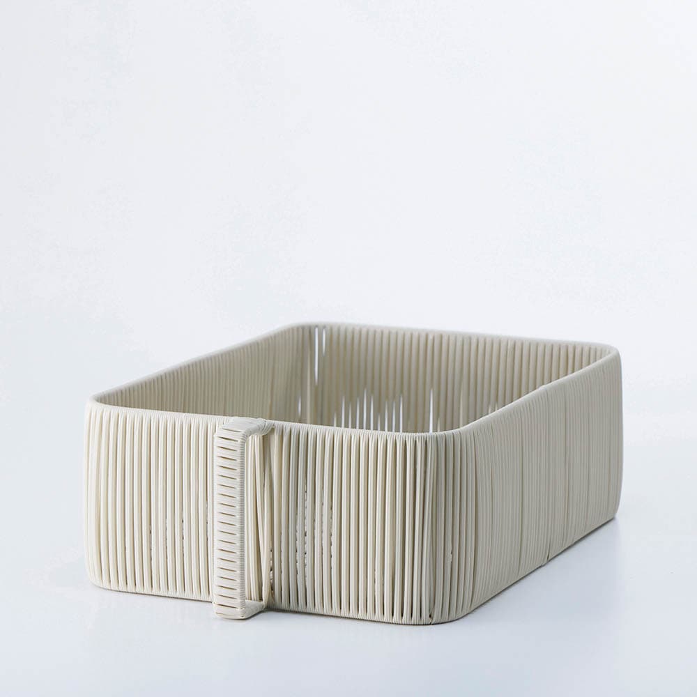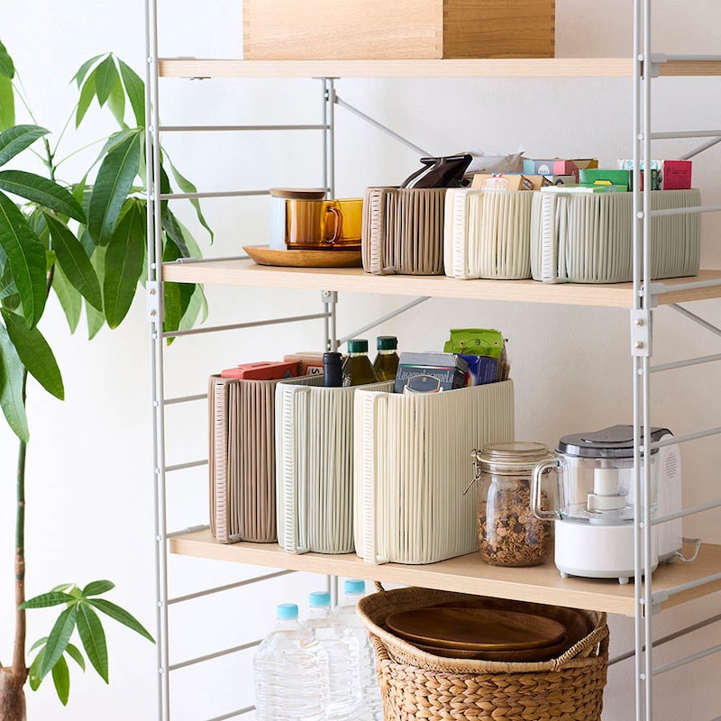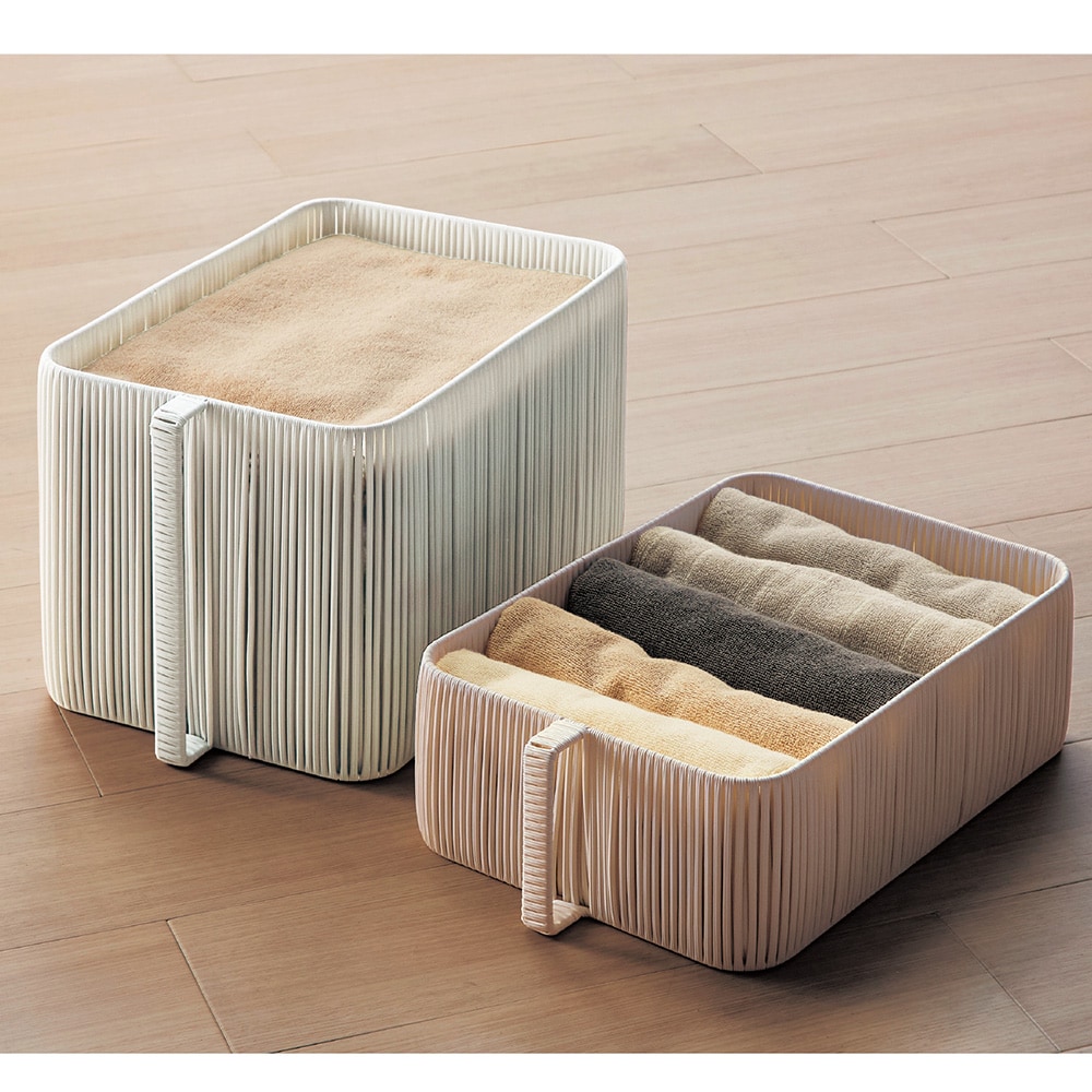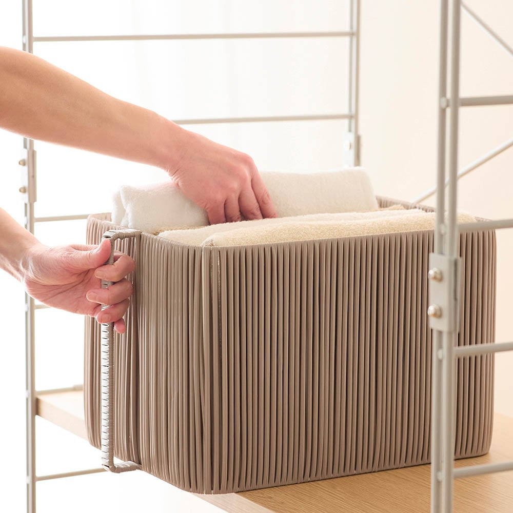 縦型取っ手付きで出し入れしやすく、カラー・サイズ展開も豊富で使いやすいバスケット
