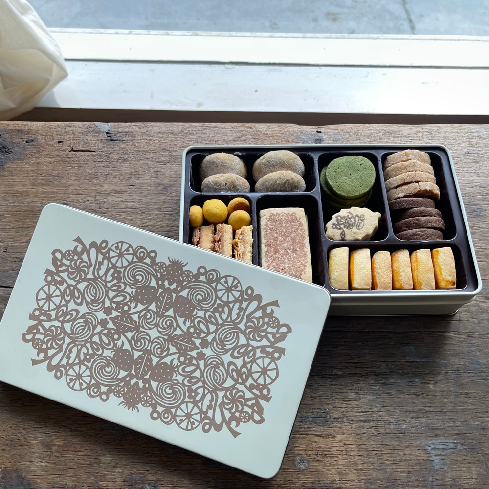 素敵な切り紙デザインのクッキー缶に素朴な美味しさと美しさを詰め込んだこだわりのクッキー缶です。