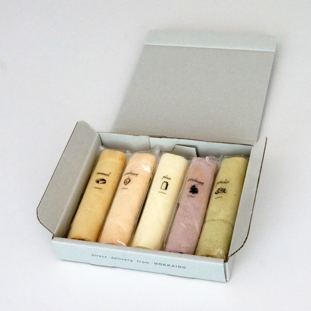 ミルク風味をしっかりと感じる5種類のクリームをふわふわ食感のスポンジで巻き上げ、スティック状のロールケーキに仕上げました。ワンハンドで食べられるので、ティータイムはもちろん差し入れや外出先でのひとときにおすすめです。