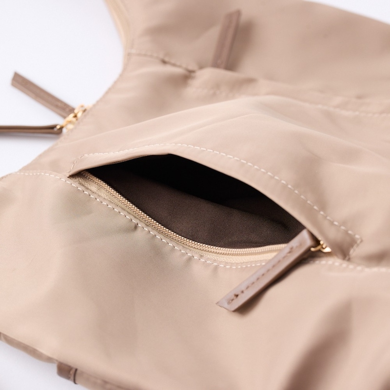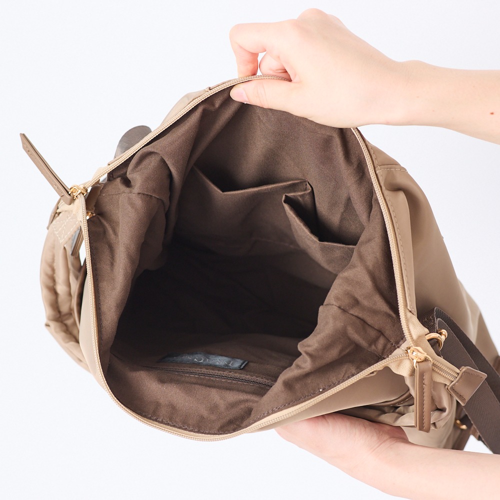 カラーや光沢は説明通り。とにかく軽くて沢山入ります。そのうえ、説明書きにはない、内ポケットがあり細かな配慮のあるバッグです。外側に2つある、ホック付きポケットの深さはかなりあり、中に入れたものが落ちることも無さそう。また、そのポケットの中には、更に仕切りポケットがついています。片方は、縦にスマホや手帳が入る程の仕切りポケットがあり、もう一方は、ペン等の縦長のものが3本入るほどの仕切りポケット有。ありとあらゆる場所に細かなものを整理して入れることが出来るので、こんなバックを待っていました。といった感じです。