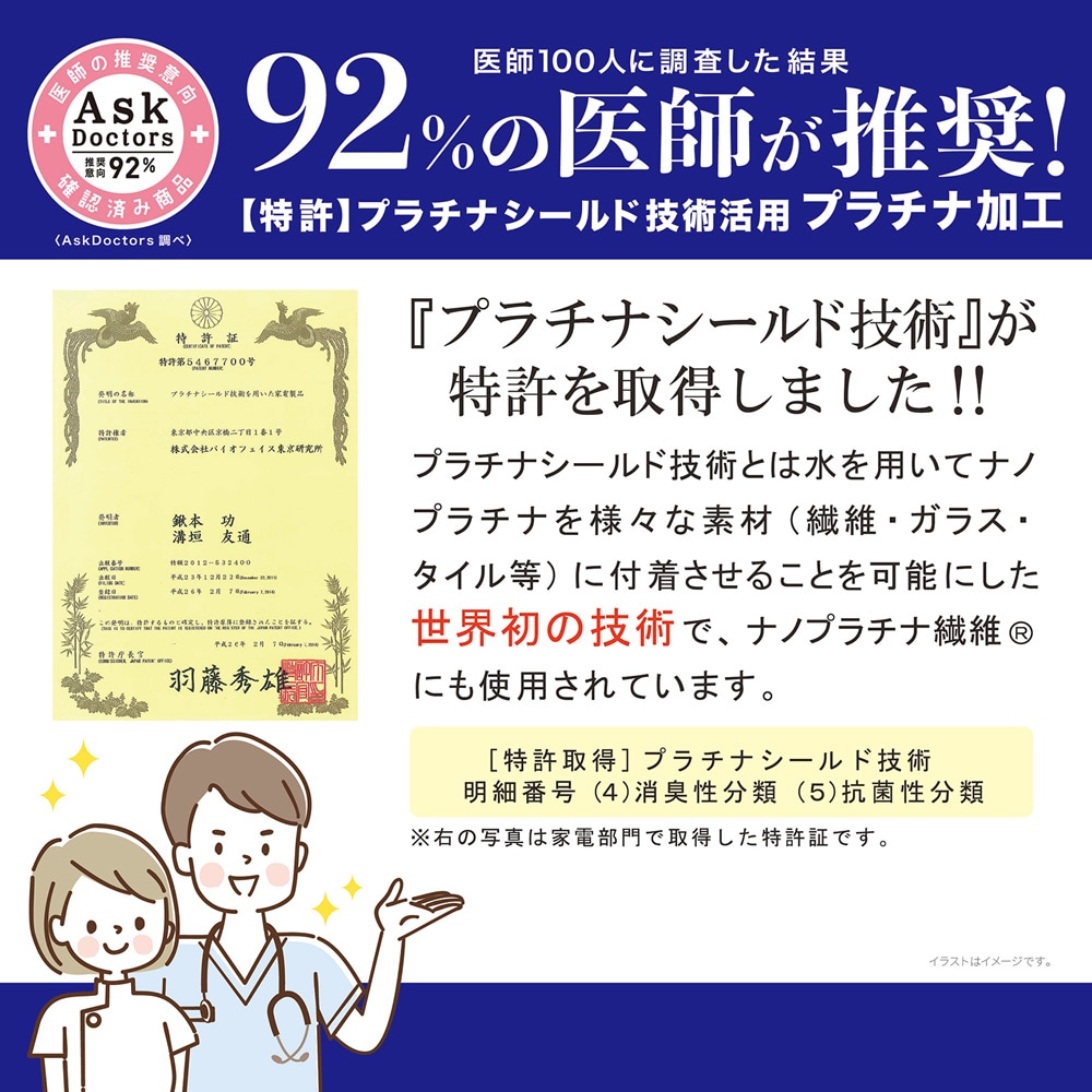 92%の医師が推奨する“プラチナ加工”を施した抗菌防臭加工付きまくらカバー