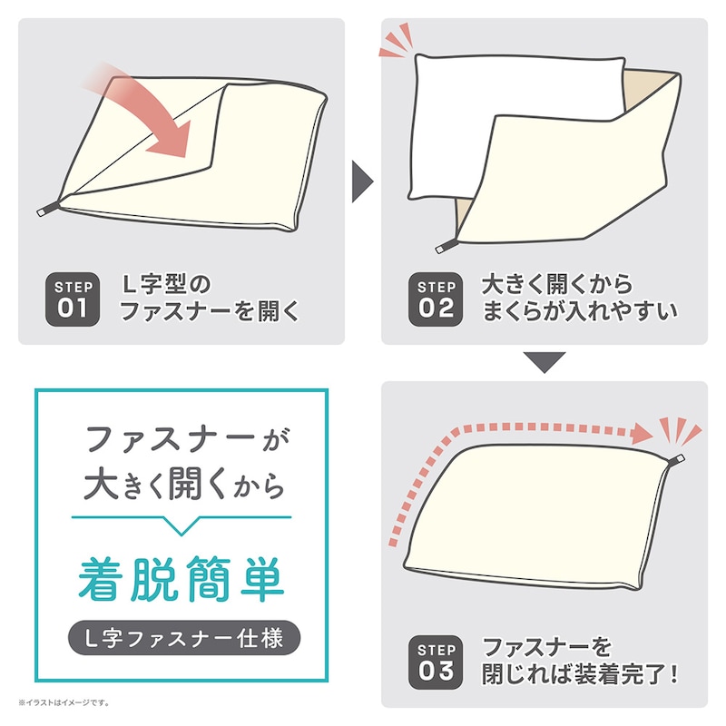 ●L字ファスナーなので、枕の出し入れがしやすい