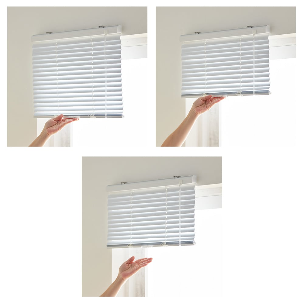 【カーテンレールにも取り付けられる】手で上げ下げできるコードレスのブラインド