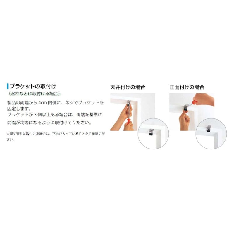※カーテンレール以外に取り付ける場合、木ネジの効かない所には取り付けできません。