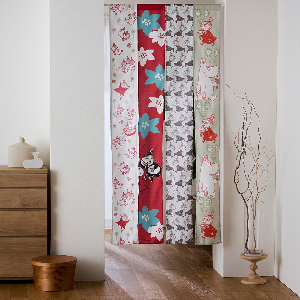 リトルミイがお部屋を明るく演出。通り抜けやすく間仕切りにも最適な4連のれん